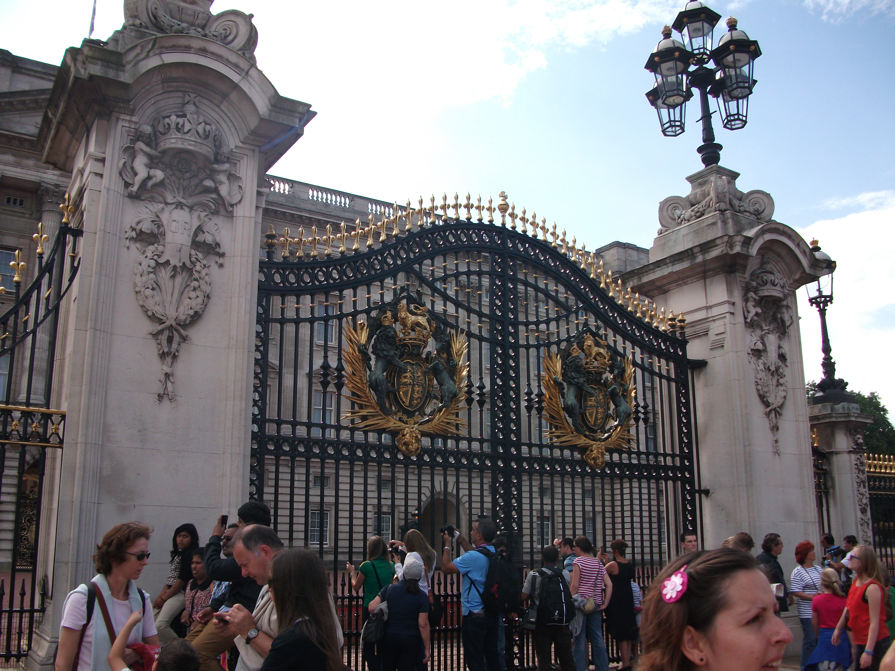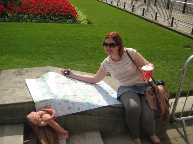 After a morning of being really rather cultured we took a leisurely stroll up into Hyde Park and on towards Buckingham Palace via Harrods. As we walked through the park we came across what we think is the seating area for the Open Water Swimming…there was a lot of purple and pink. We also found the Olympic Shop and had a mosey around. I was quite tempted to get a little running shirt, but thought that I should probably be saving my money really…