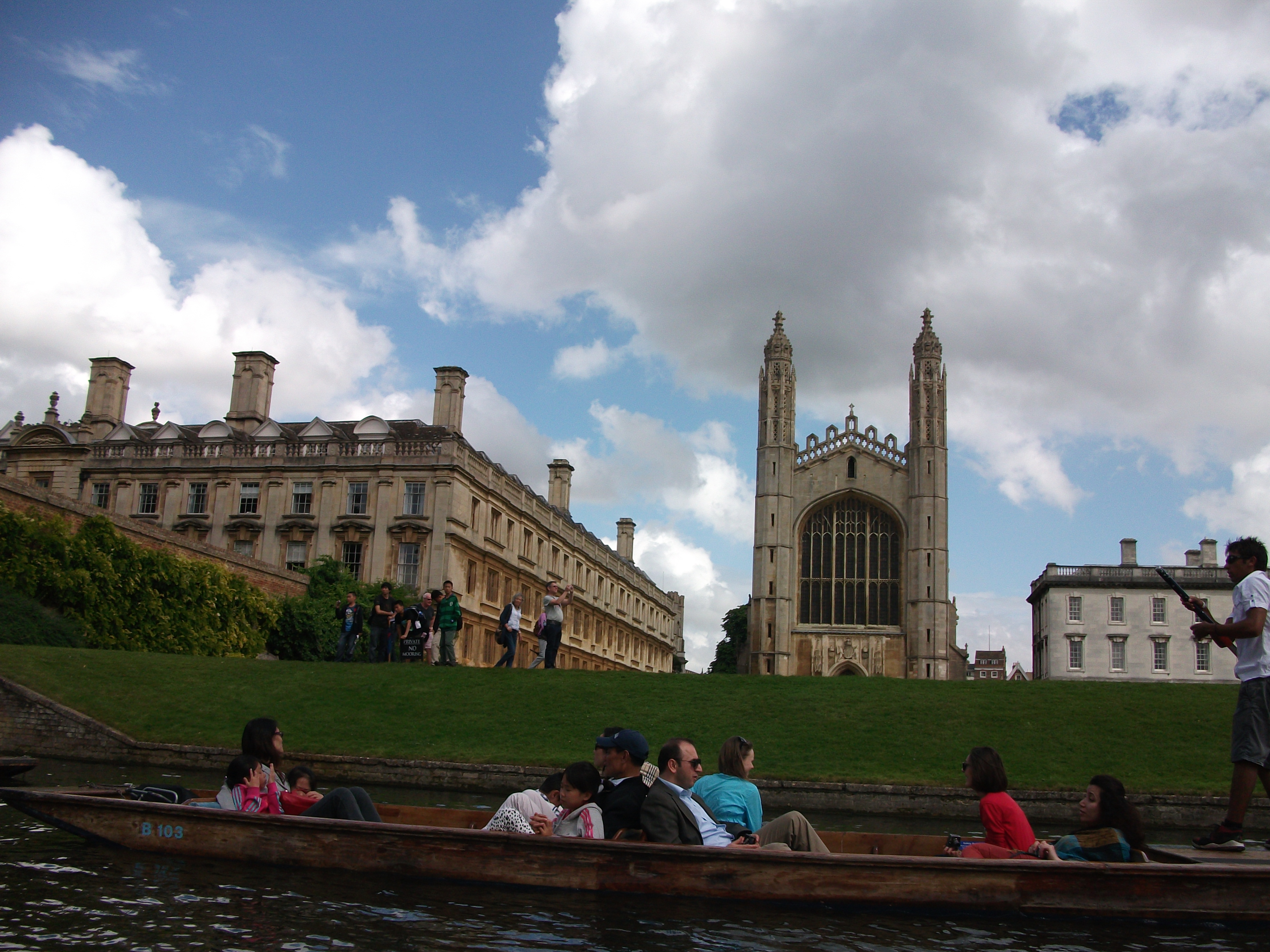 We did finally get on to the Park and Ride, after some heavy rain and a very large queue to get on, and were off towards the fantastic city that is Cambridge. After a spot of lunch at ‘Tatties’ where I think I must have eaten the LARGEST potato that I have ever laid eyes on, we set off for the Punting. We managed to get away with a discounted price (£14.50) and a lovely guide! Smiles all round here 🙂