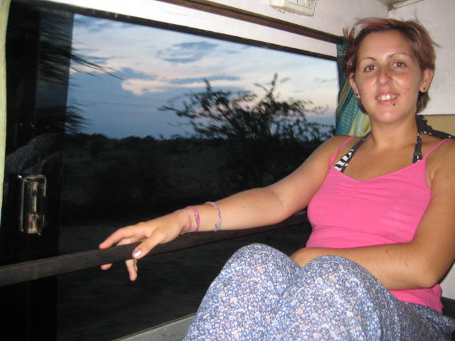 The bus left at 5.15pm from Jaisalmer and on first glance it was actually quite nice: a double bed to sleep in and a great view…the bed was a little sweaty and full of sand but nothing a blanket can’t cover up!