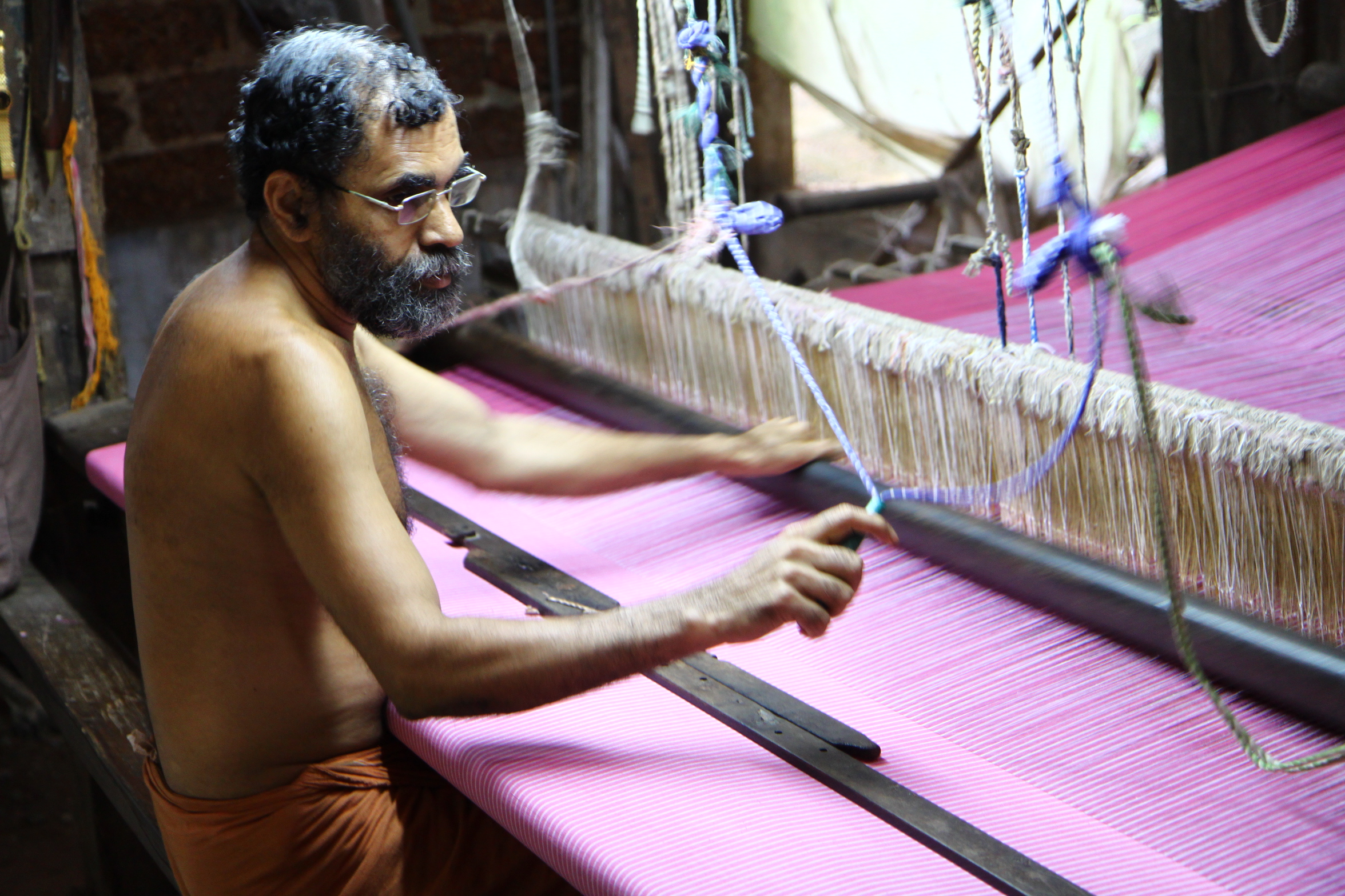 There were some sudden rain showers and I was put off of the idea of going back to the beach, so asked for a taxi to go into the city. The owner of the guesthouse called me a taxi and they took me to see some weaving and then on to the Old Fort…both were amazing. The weaving place was really busy, with the hum of the bobbins going back and forward every second and the bang of the foot pedals hitting the floor.