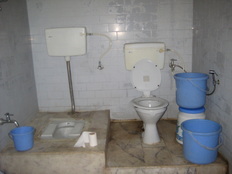 The room has a medium sized main section and a large bathroom with a western toilet and a squat toilet – and six buckets! Now I could understand if there were two: one large and one small, but six, surely that is just excessive, do you need one for each limb?!