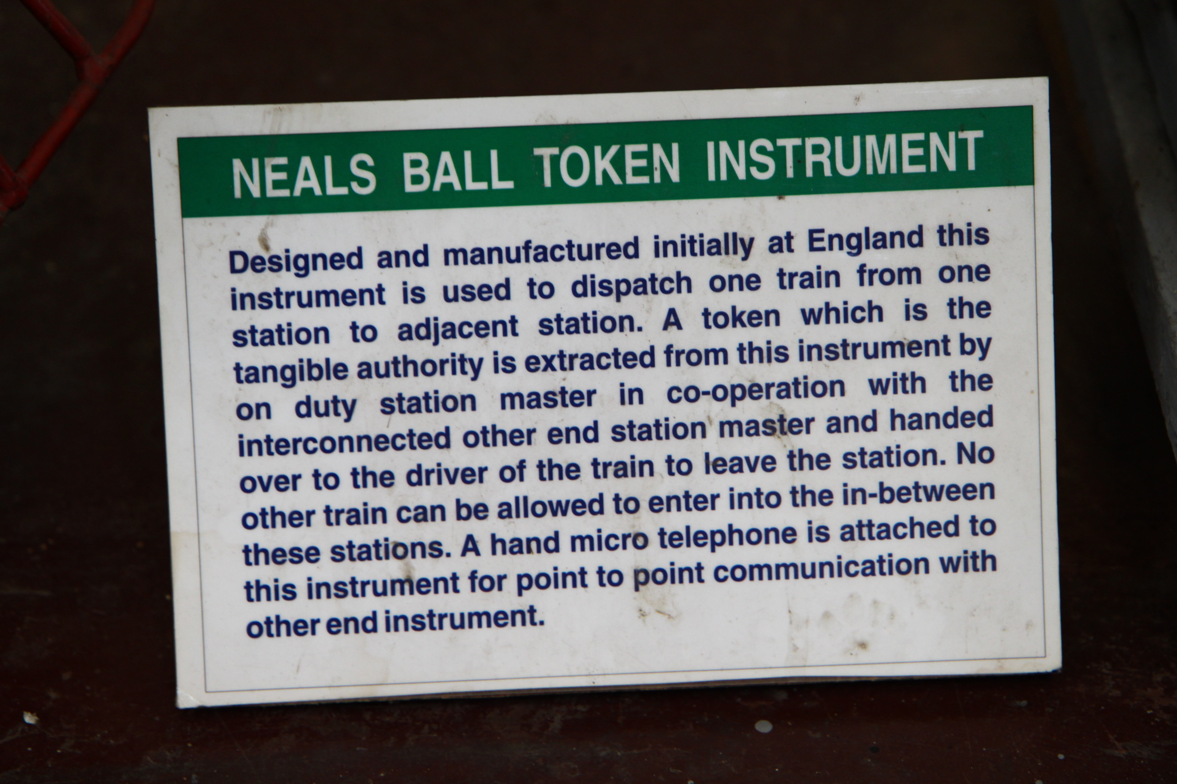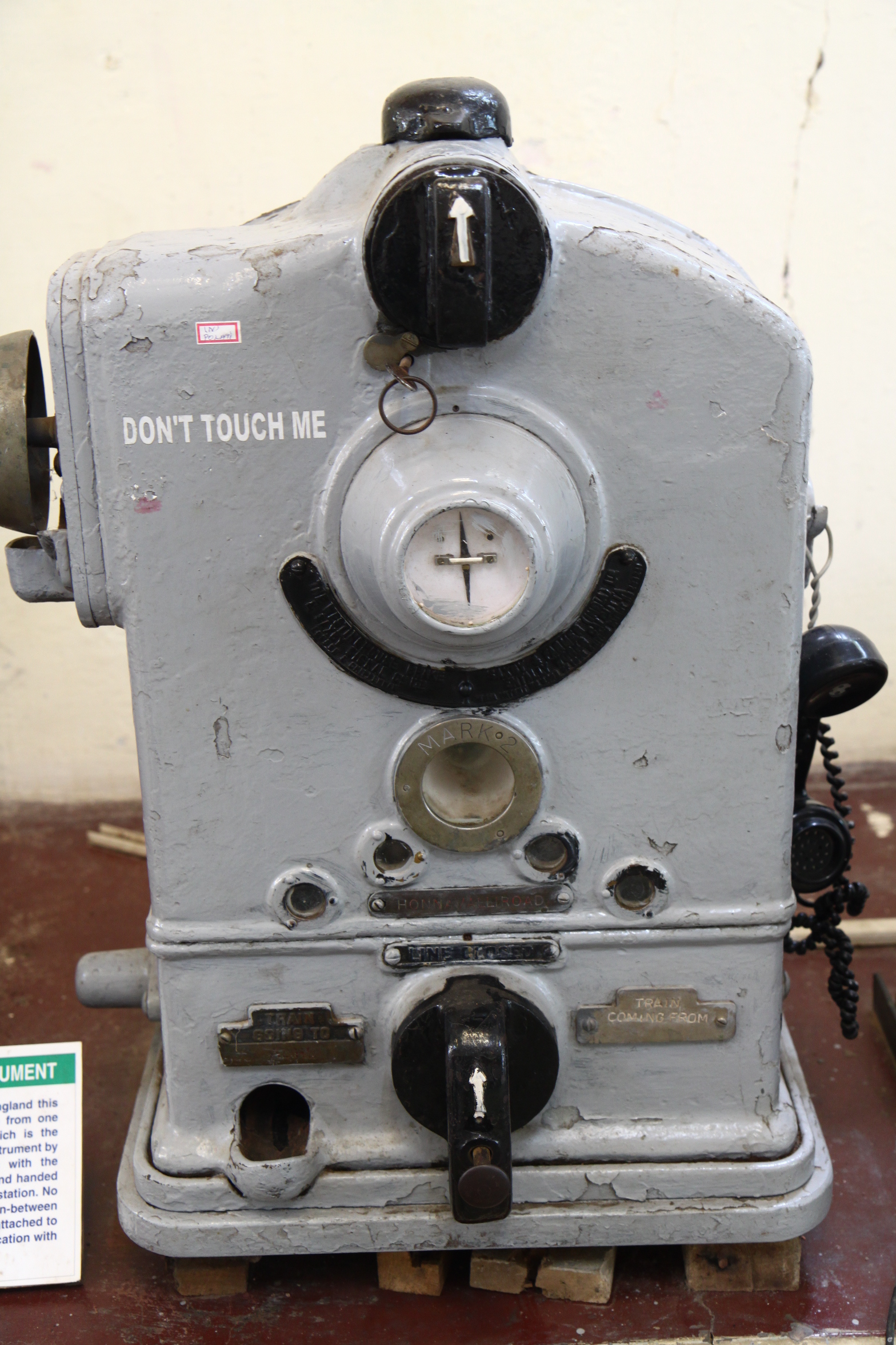 If you look at the photos underneath, you can see something that looks like a big grey telephone, that is a machine that gives out ‘tokens’. These are handed between the train driver and the signaller so that they know where the trains are, so if the signaller has the token from one train, he wouldn’t let another train into the same bit of rail. The thing that looks like a big tennis racket is what they use to catch the token when it’s being thrown at them!