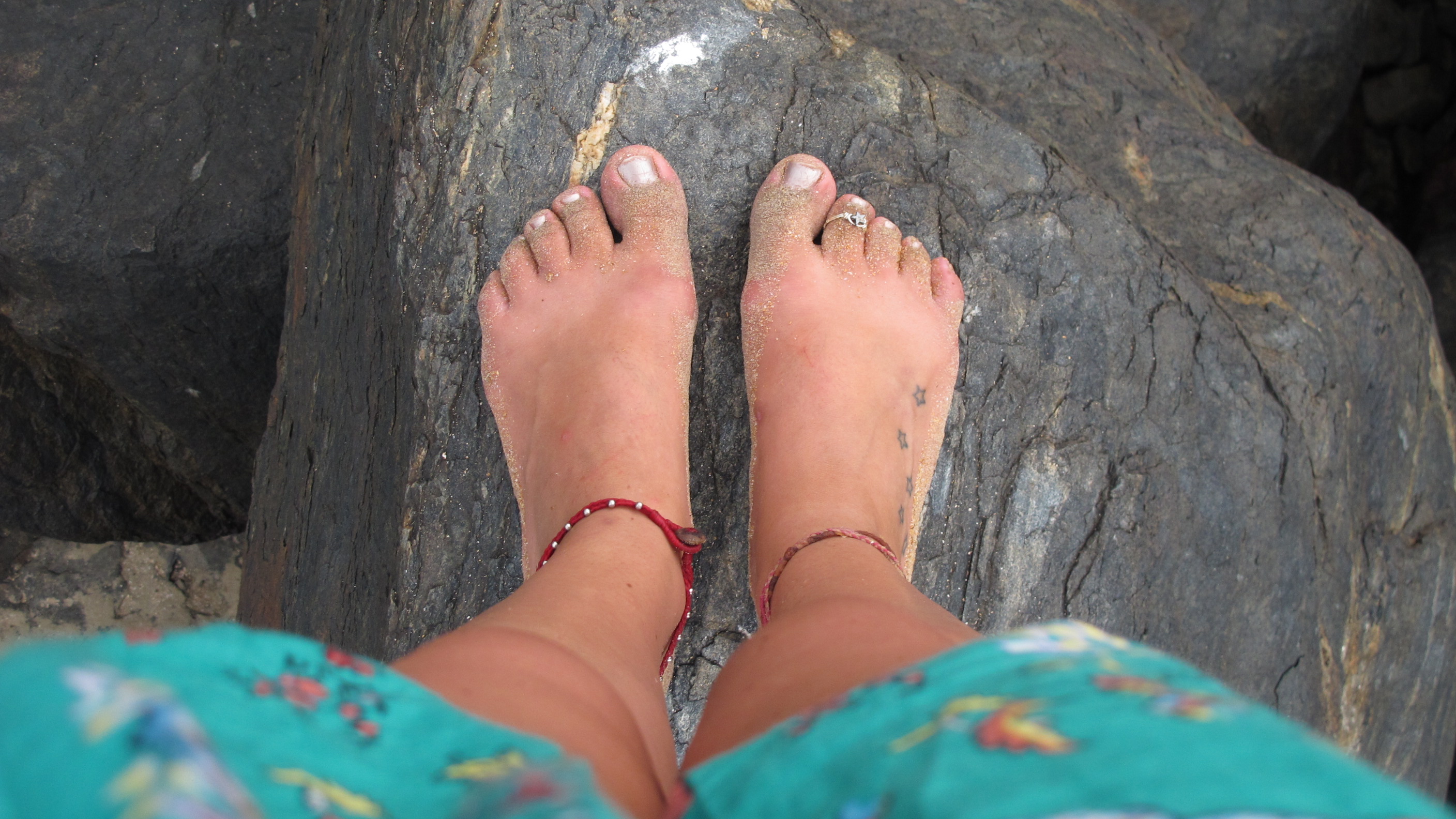 I set off after breakfast heading on the path towards Kudle, it was a nice adventure: part walk, part extreme flip-flopping. Then it stopped being a path and became a wilderness! I started off trying to ramble through the bushes, but I was soon no match for the dense plant life. I turned back and scaled over some particularly large rocks, some of which were HUGE lumps of granite. This took a fair while. Once round the rocks, I quickly found a path again and was back on what I hoped was the correct one (well it was A path). Oh how wrong I was! I was thinking, ‘Wow, I’ve been walking for ages now so I must be near!?’ I came across some fishermen and said our ‘Hellos’ and then carried on. After a short while I arrived at the top of the headland, thinking, ‘Wow, I wonder what the views are like?’ I stepped over the rock and was extremely disappointed when I could only see more rock and sea and wildlife. Needless to say that I went back to ask the fishermen where the bloody beach was!