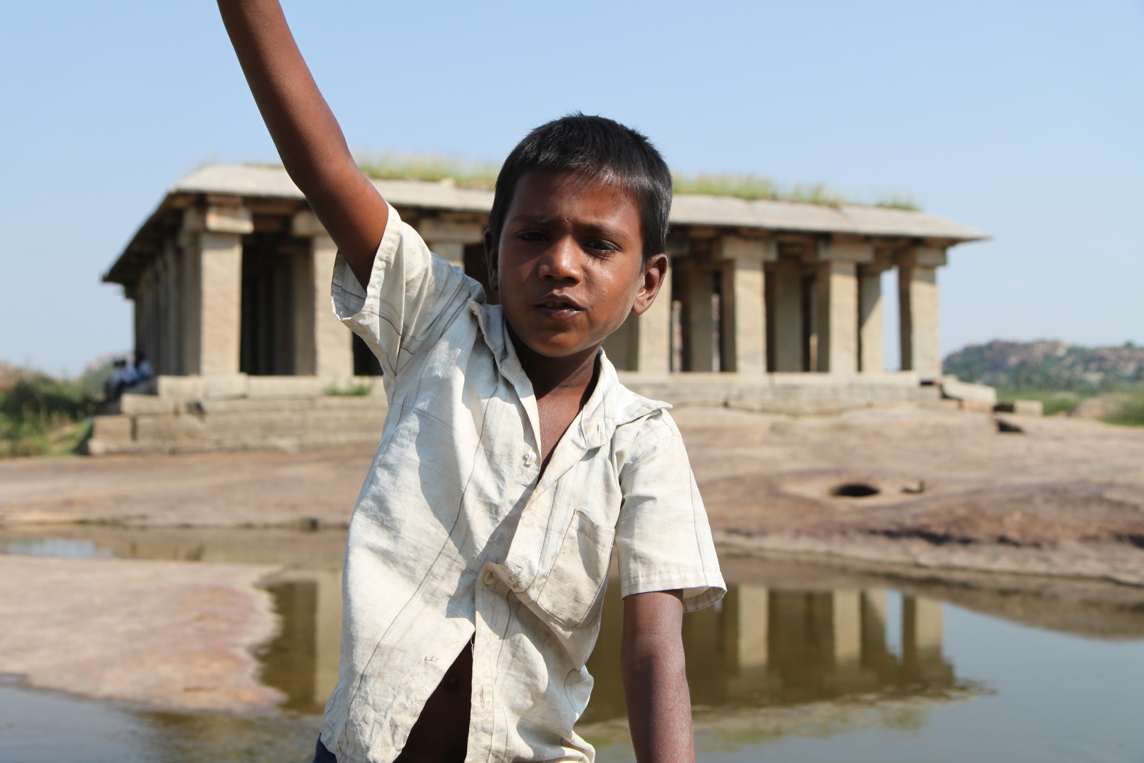 It was very easy to get the bus from Hospet to Hampi, and taking only 30 minutes it was one of the quicker bus rides I have taken lately. I passed hundreds of boulders that appear to have been placed by a very patient giant. There are literally so many of them balanced on points and sitting at all angles:, if I hadn’t to have driven past I wouldn’t actually be able to imagine that rocks that big could balance so very well naturally.