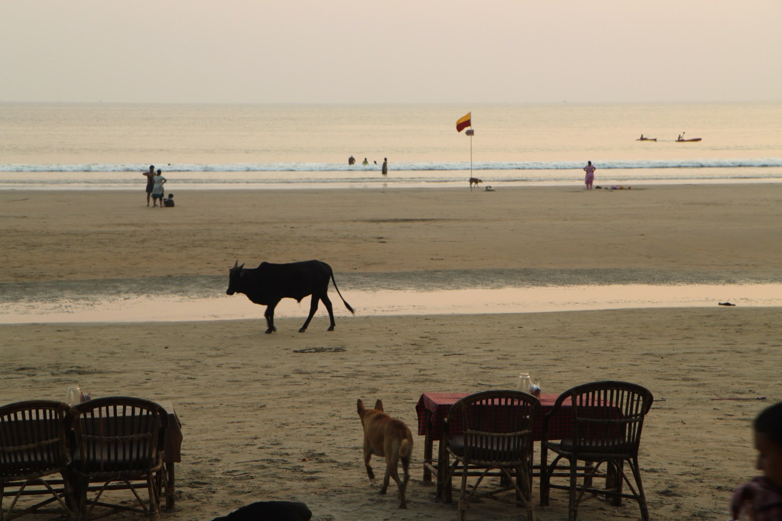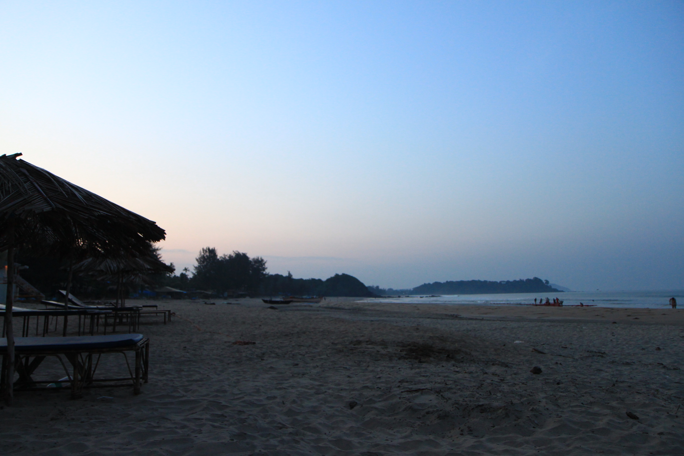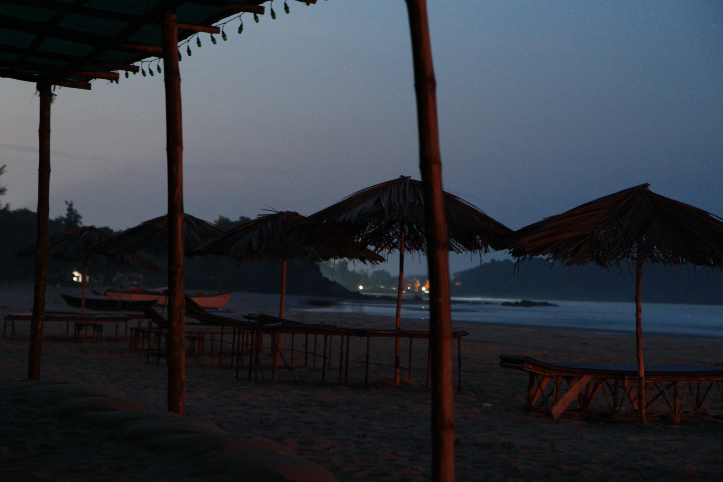 Getting to a new place in the dark is never brilliant, and I arrived in Palolem at 5.30am, so it was still dark. I took an Auto-Rickshaw to the beach in hopes of finding a lovely hut to rent. As it was still pitch black when I got there, I couldn’t really do much but wander about randomly in the sand with my backpack! Eventually I found another human being (as opposed to the gangs of dogs on the beach) and asked them where any good huts were, he vaguely pointed off into the distance and I didn’t really get much else from him…