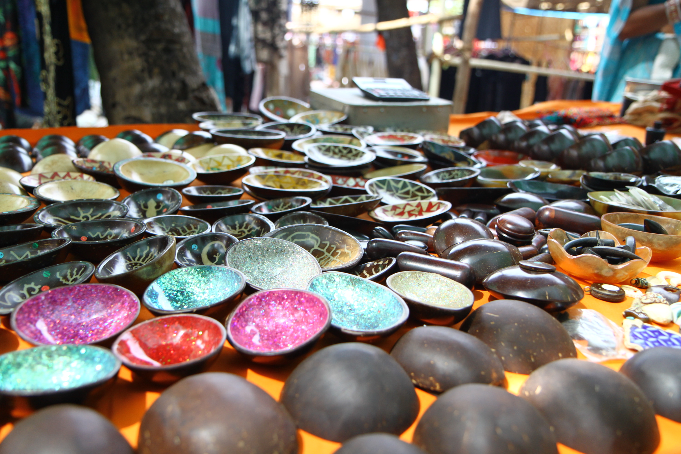 I rode the moped into Anjuna and tried to spot anything remotely similar to a flea market, but came up empty. Next I drove to the sea front and parked the moped, choosing instead to walk along the beach. Eventually I came across the flea market, but it was much bigger than I had thought it would be. There were hundreds of stalls selling everything from spices and herbs to henna dye, clothing and bed spreads to bottles of water, leather wallets to silver bangles and the usual tourist tat of little boxes and tiny carved elephants.