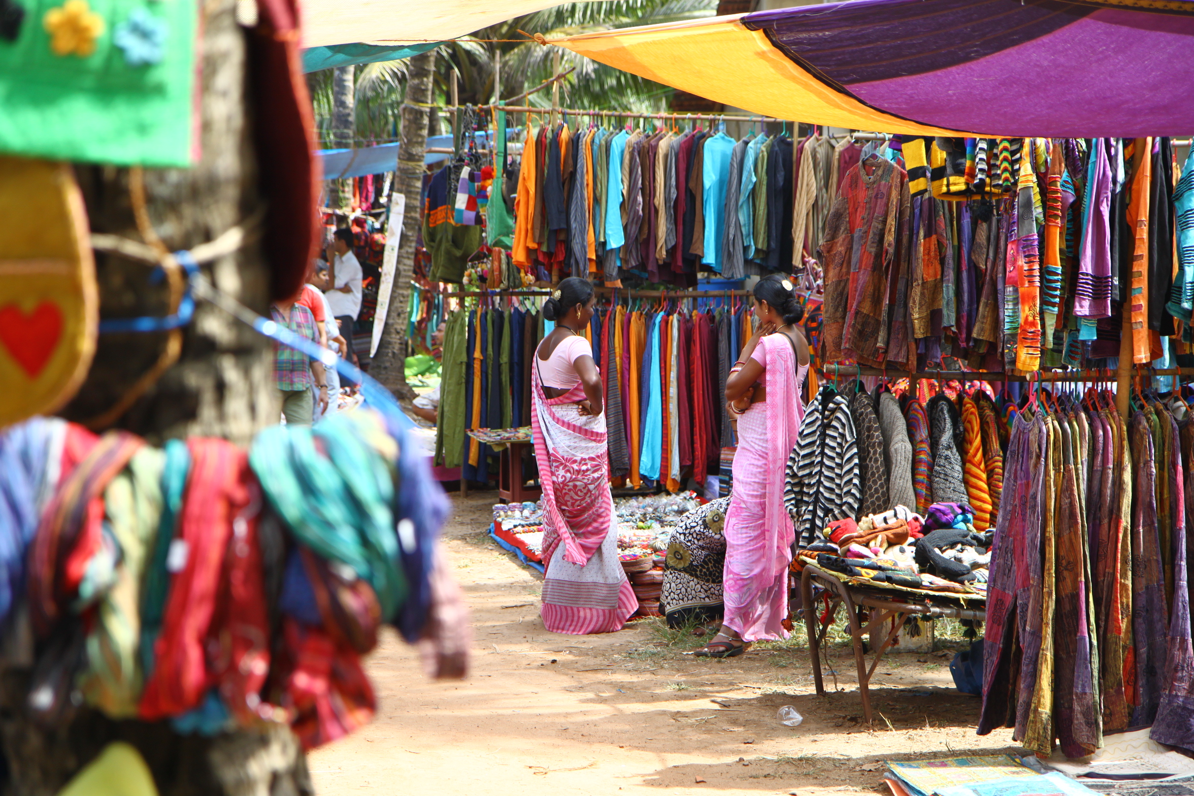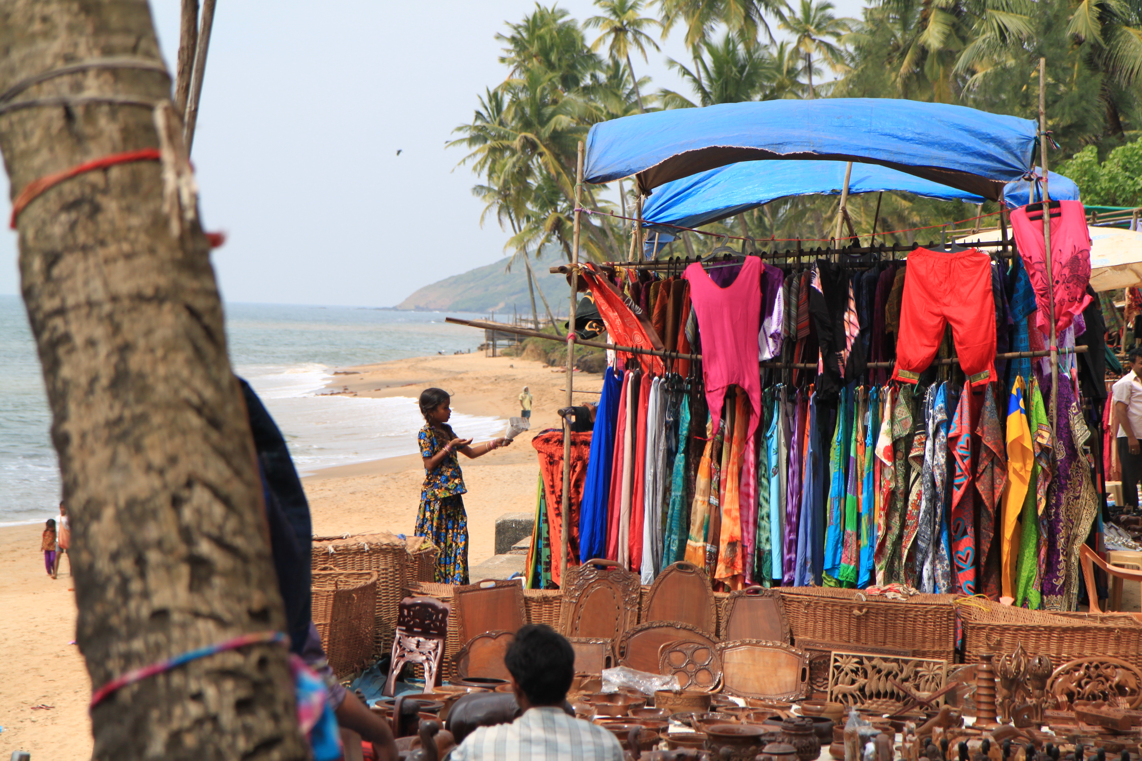 After an eventful night of being woken up every so often by the neighboring hut owners on their drunken adventures, I rose and ate breakfast bleary eyed and yawning. I had read in a few places that Anjuna Flea Market was a really great place for people watching and for buying really interesting bits and bobs such as clothing and souvenirs to take back home for friends. As it was an overcast and dull day, unsuitable for the beach, I decided to go and see it for myself.
