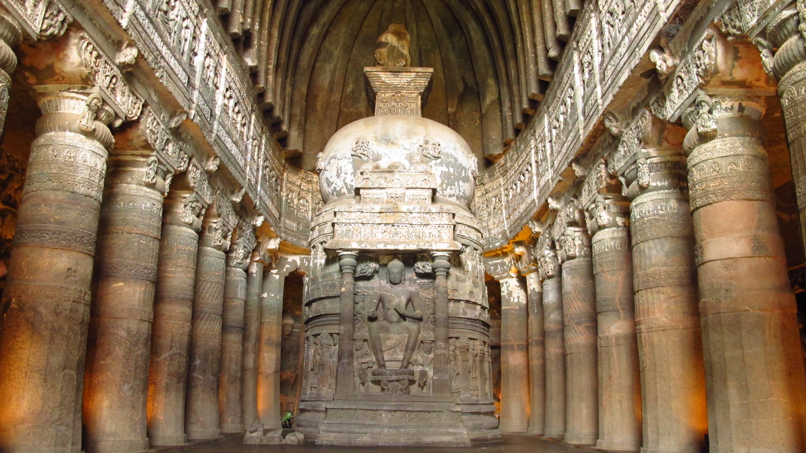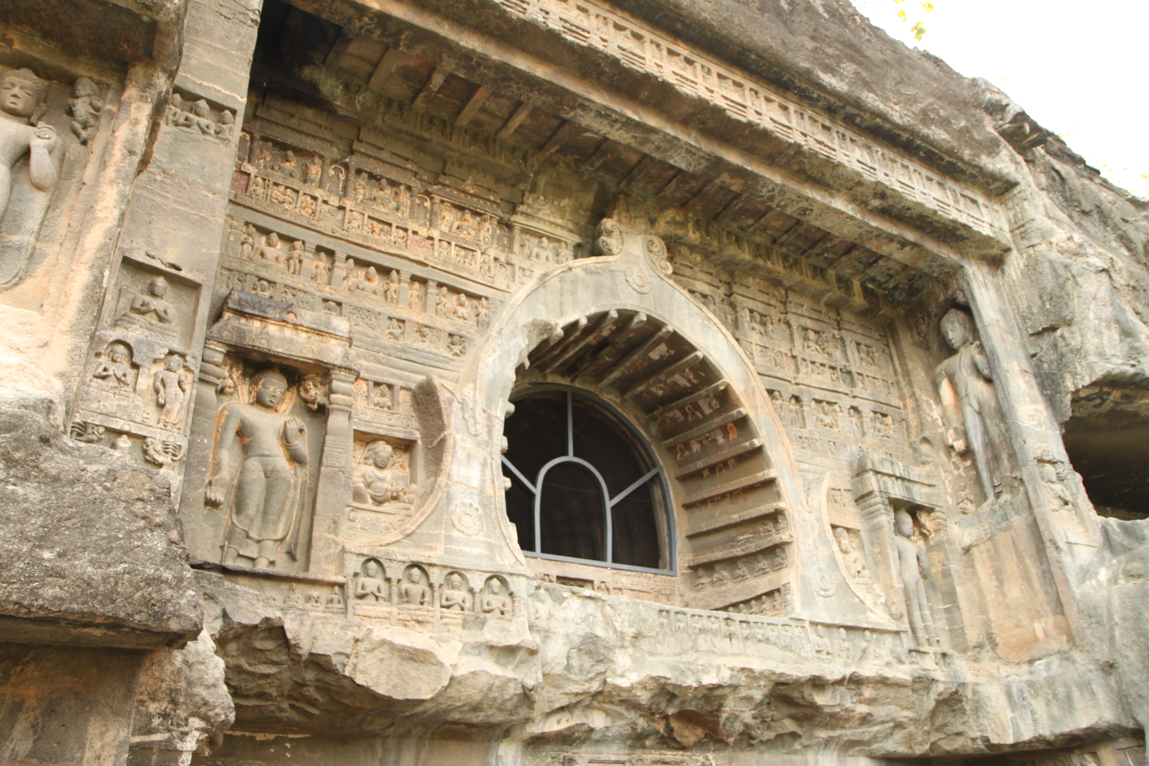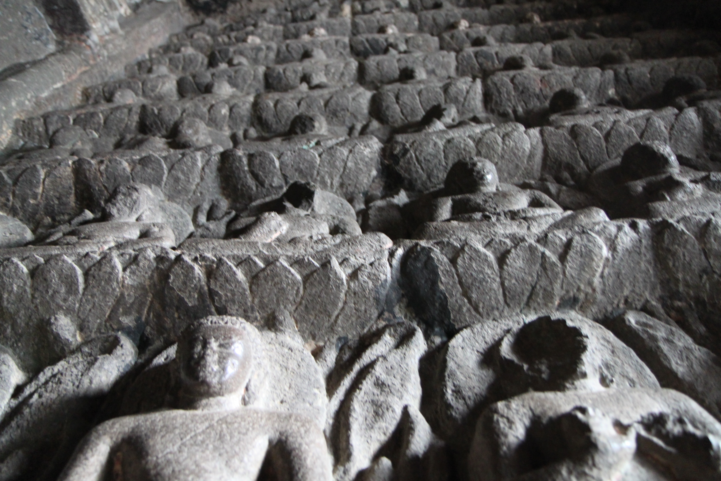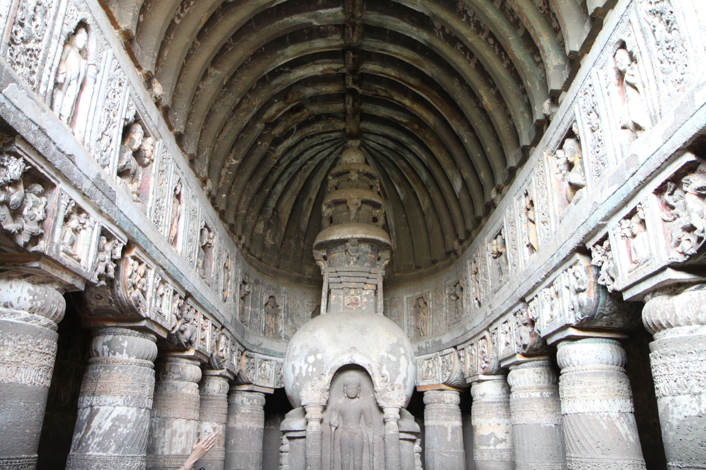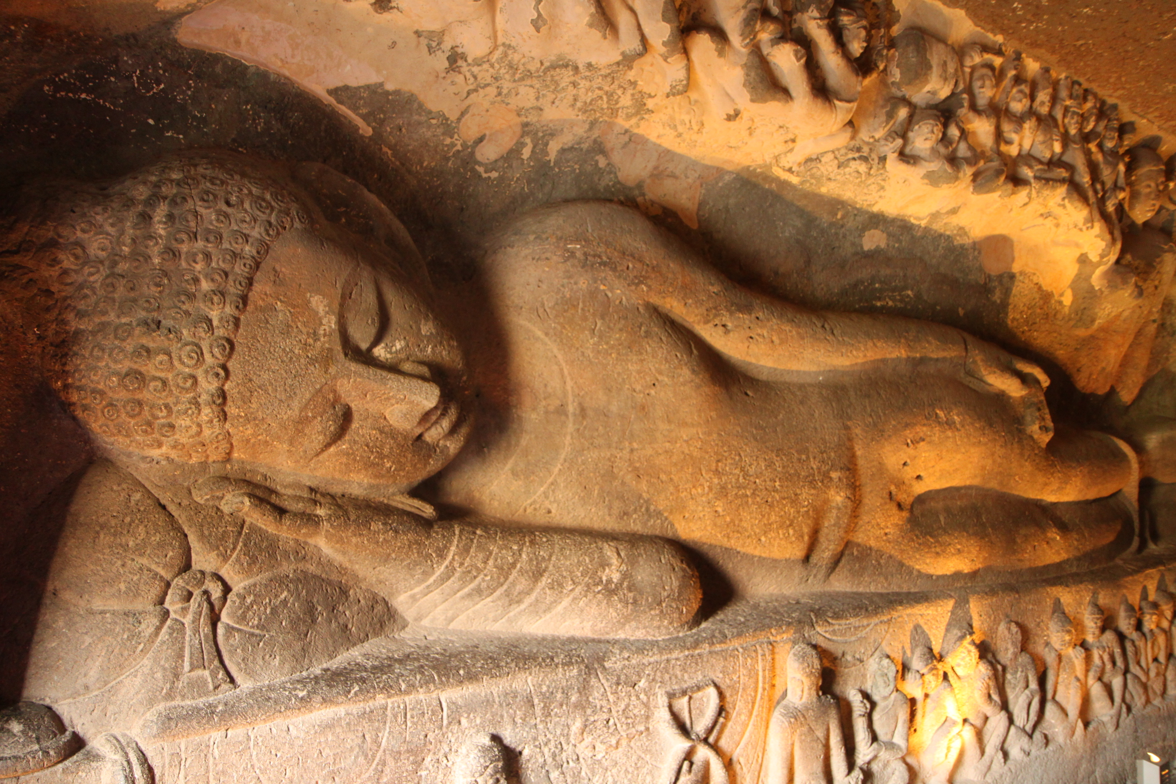 The caves line a steep horseshoe shaped ravine with the Waghore River flowing below. All of the caves are Buddhist so I had an unofficial ‘biggest-Buddha-carving’ competition. It wasn’t hard as the Buddhas seemed to get larger with each cave carved.