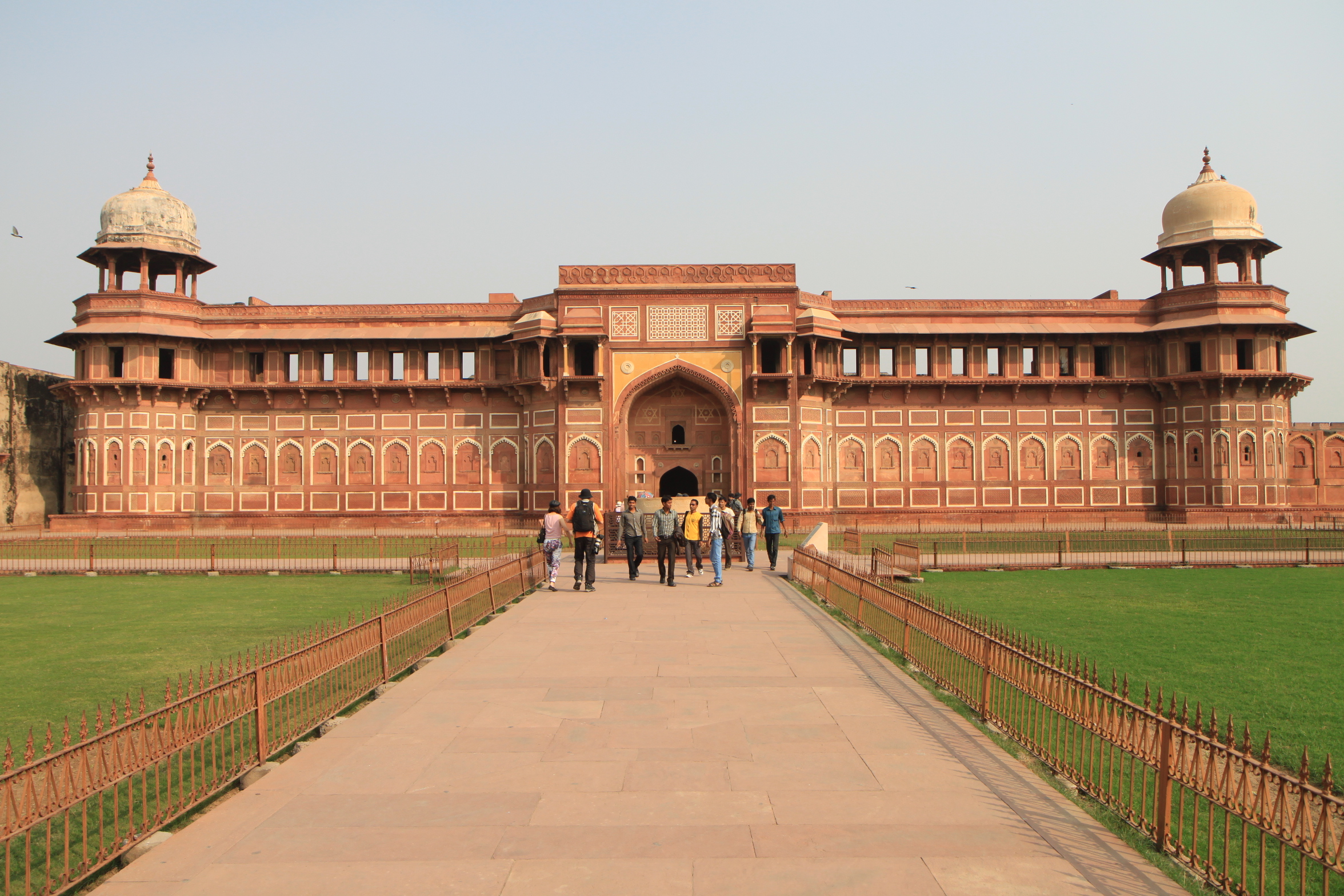The Agra Fort was begun by Emperor Akbar in 1565 and grew with each successive leader. Shah Jahan (of Taj Mahal) fame included a large amount of construction in marble.