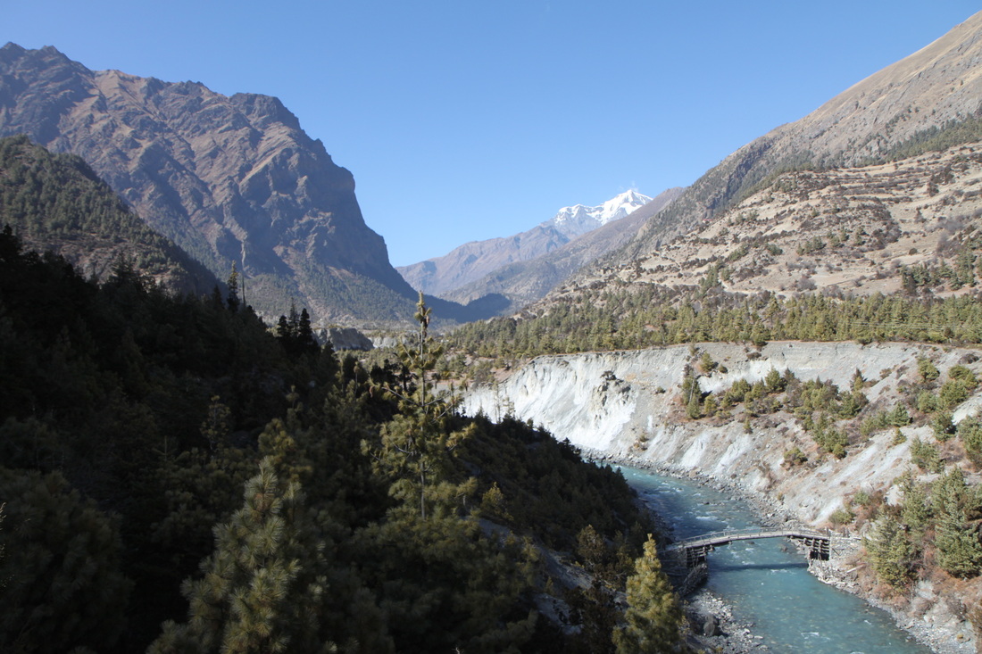 Once I reached Jagat I found a lovely little trekking lodge called ‘Hotel Mountain River View’ with cute rooms overlooking the river that churns away wildly below it. I had a really comfy, hugely padded bed and a hot shower…yay. The shower was a big positive…but sadly a little too hot so it was a bit difficult to actually use…but I’m not complaining!!!