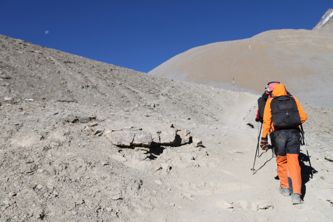 I teamed up with Iris and Christian and a few others to walk the trek today as it seemed a little safer: of all the days on the trek this would probably be the one that you might need safety in numbers, this is due to the difficulty of the days trekking. Apparently the ascent is too high, the altitude too much and the day too long for comfort…and an average of two people every year die doing this part of the trek!