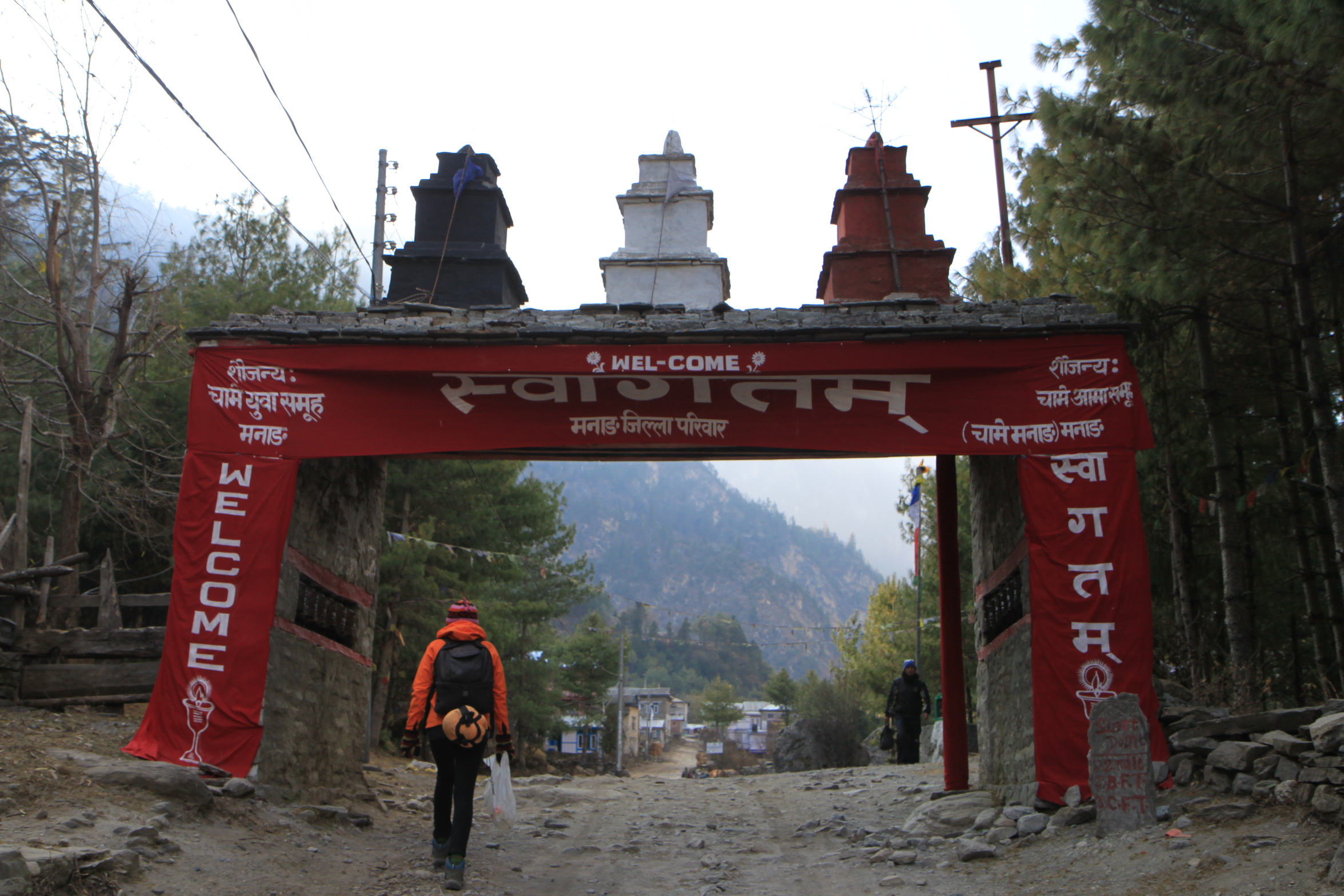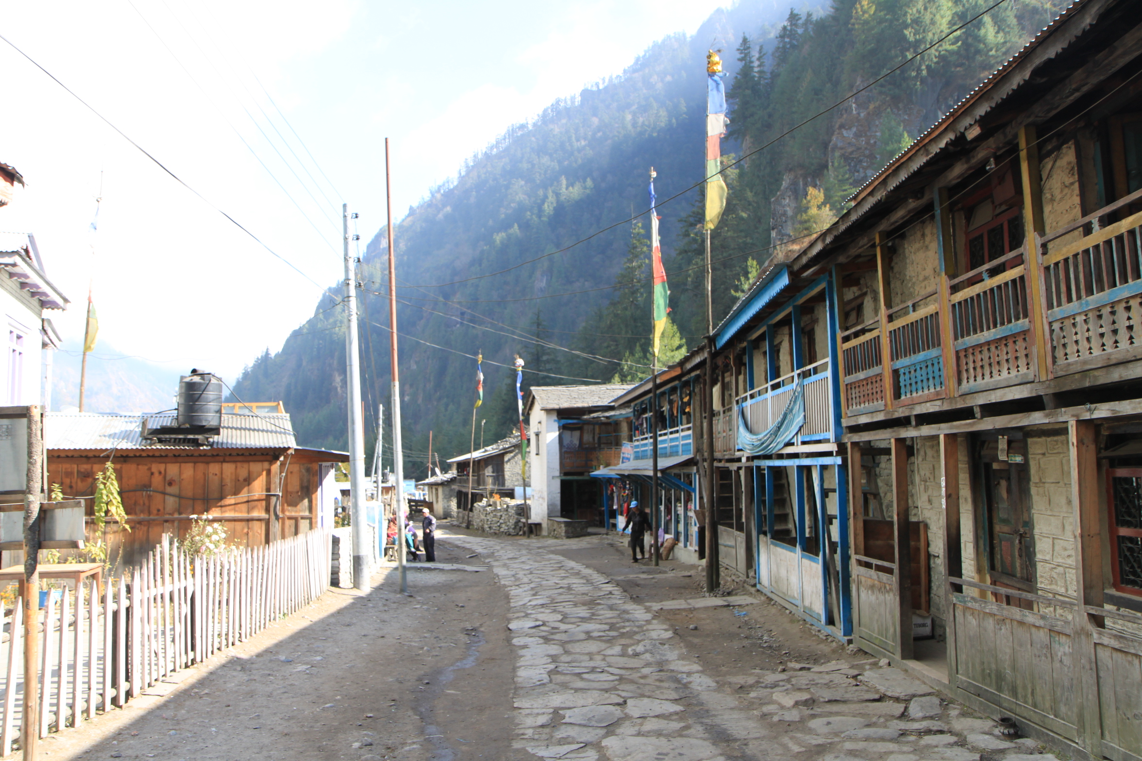 From Tal, whose approach looks like something out of Lord of the Rings, it was mainly easy going through a couple of small villages and up to Dharapani. Dharapani must be the longest Nepali village that we have come to yet! Dharapani means ‘watertap’ in Nepali: in the olden days travelers used to collect water for the journey ahead there…