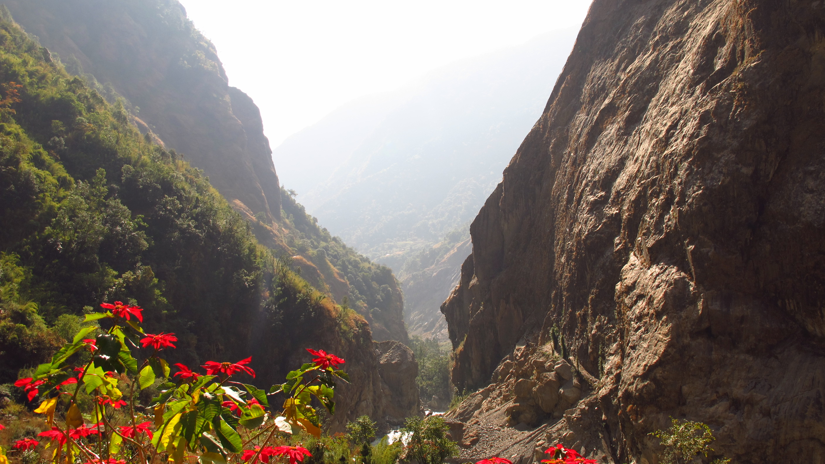 So…the buses in Nepal are pretty hair raising to say the very least! At some points on the journey from Jomsom to Ghasa, I (who was sitting by the window) could not see the road, only the million foot drop down!