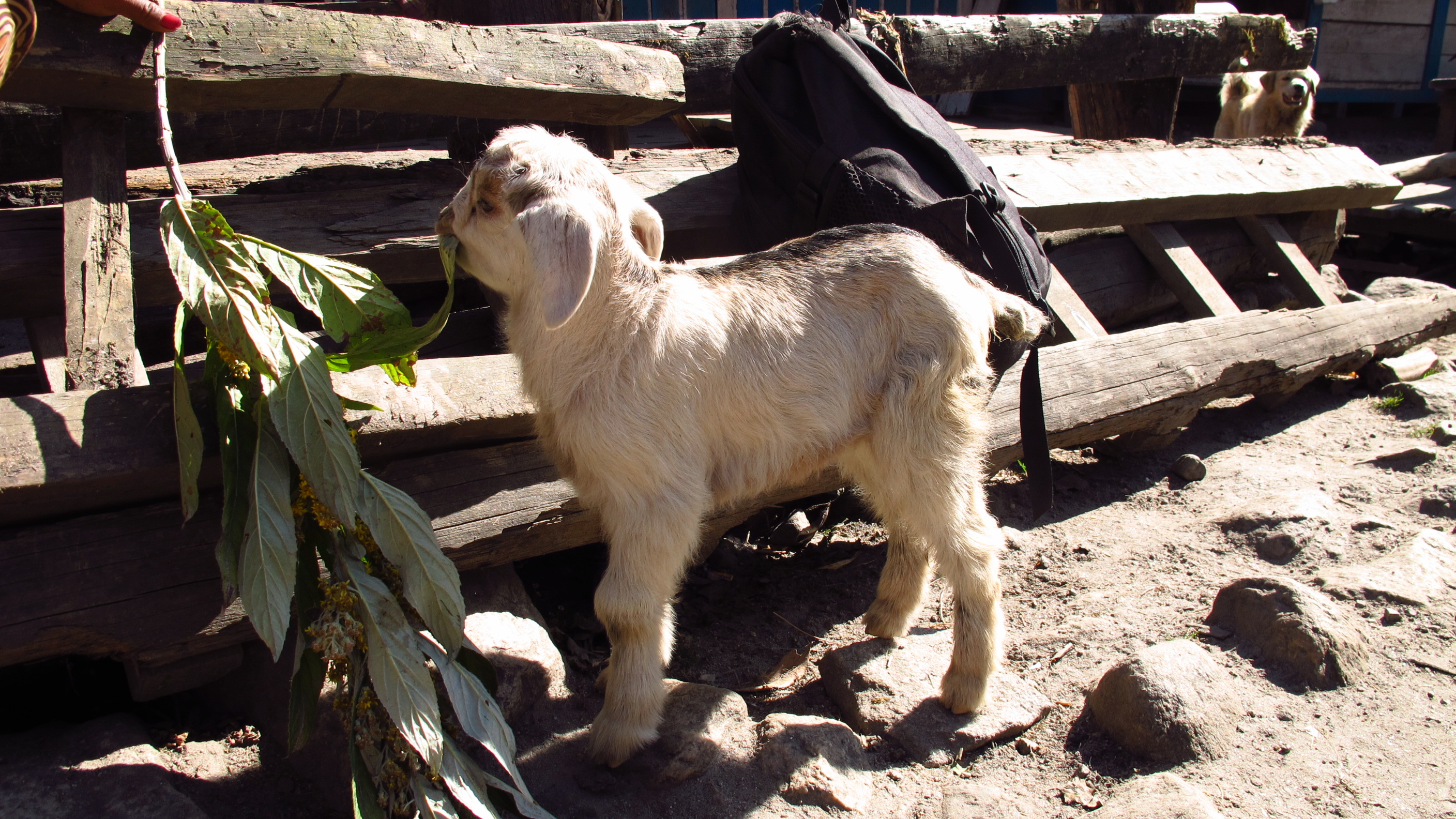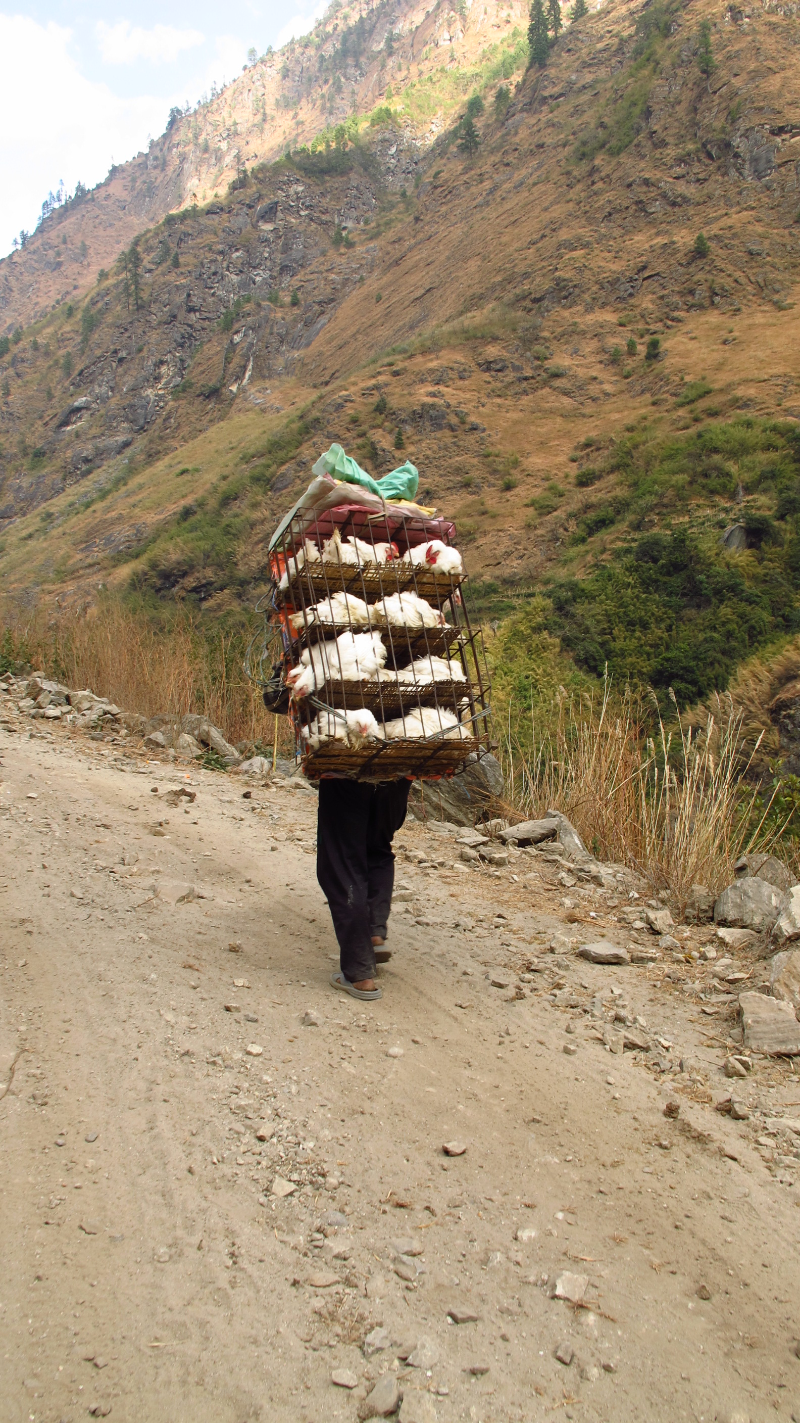 I have seen quite a lot of lovely sights, namely a lady goat herd carrying a puppy around her neck on her pack. I have also seen a man carrying a large amount of chickens in a hutch hanging from his head/neck.