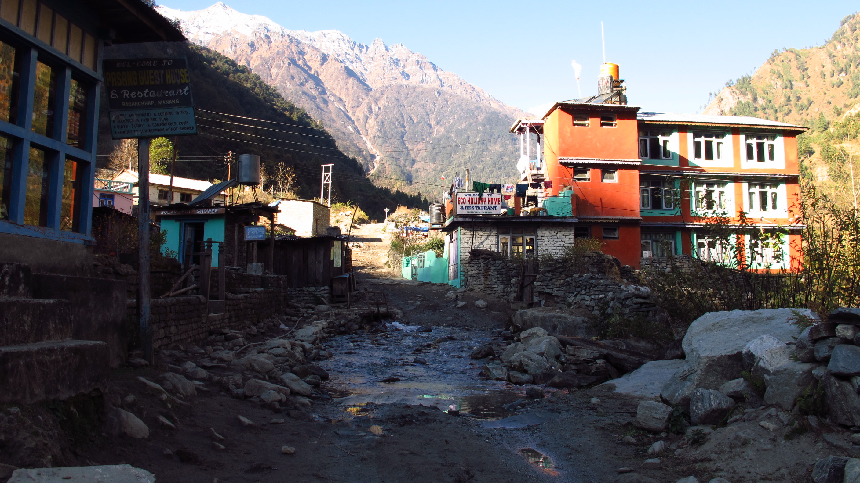 When I got to Dharapani I decide to stay at ‘The New Tibet Guest House’. I rested for a little while and then checked out the hot shower: Hot, but in a room that was so very cold that I may as well have been showering naked outside in the freezing cold!
