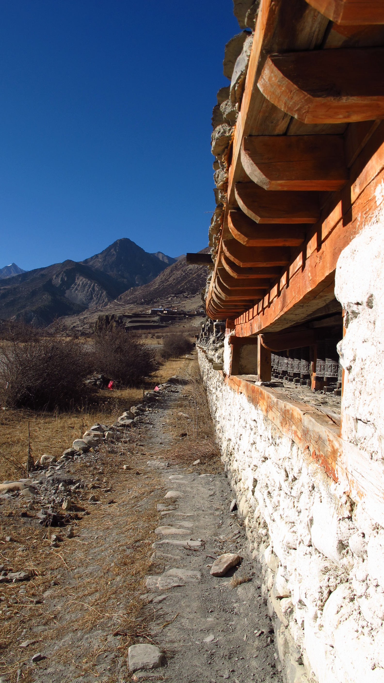 I decided to move on and try to get to Manang and let myself acclimatize there…from Humde it was all okay as it’s only a gradual ascent and fairly straight forward. I got some epic views of the Annapurna’s and of the hillside villages above us on the opposite bank of the river. It baffles me how people actually chose to live in a place like this! It’s high, cut off and the temperature is rubbish…but they do have great views!