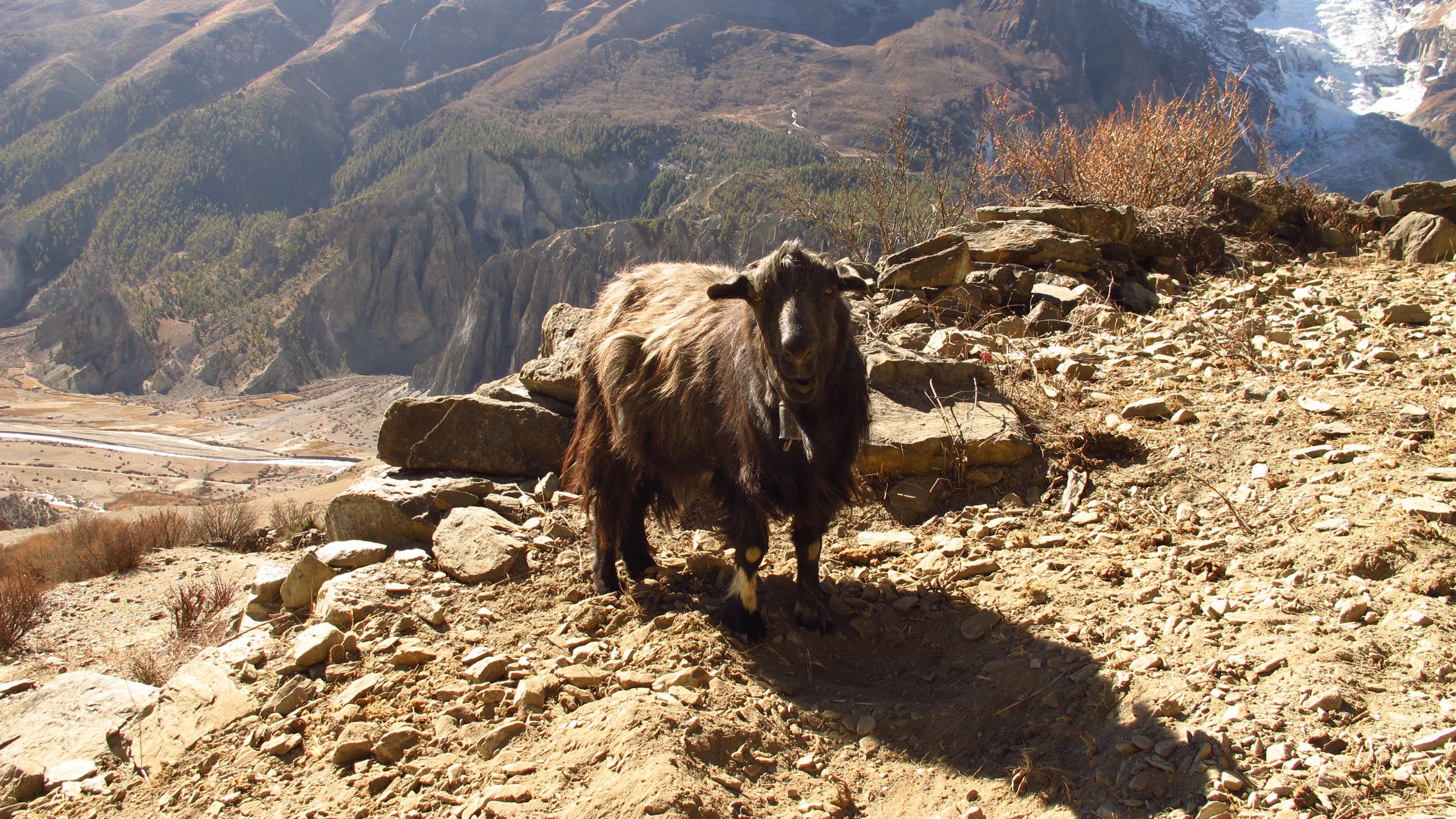On my little trek I saw a lot of interesting wildlife. Most of this was the resident Goat herd. I never realized how stumpy Mountain Goats are before. They have tiny legs!!! I saw a Bearded Vulture, which is a big Vulture that has a 3 metre (or 15 ft) wingspan…epic! Also I spotted some White-Capped Redstart flitting around in the sky. I must have looked like I was struggling because the Vulture appeared to be circling and waiting for me to drop!