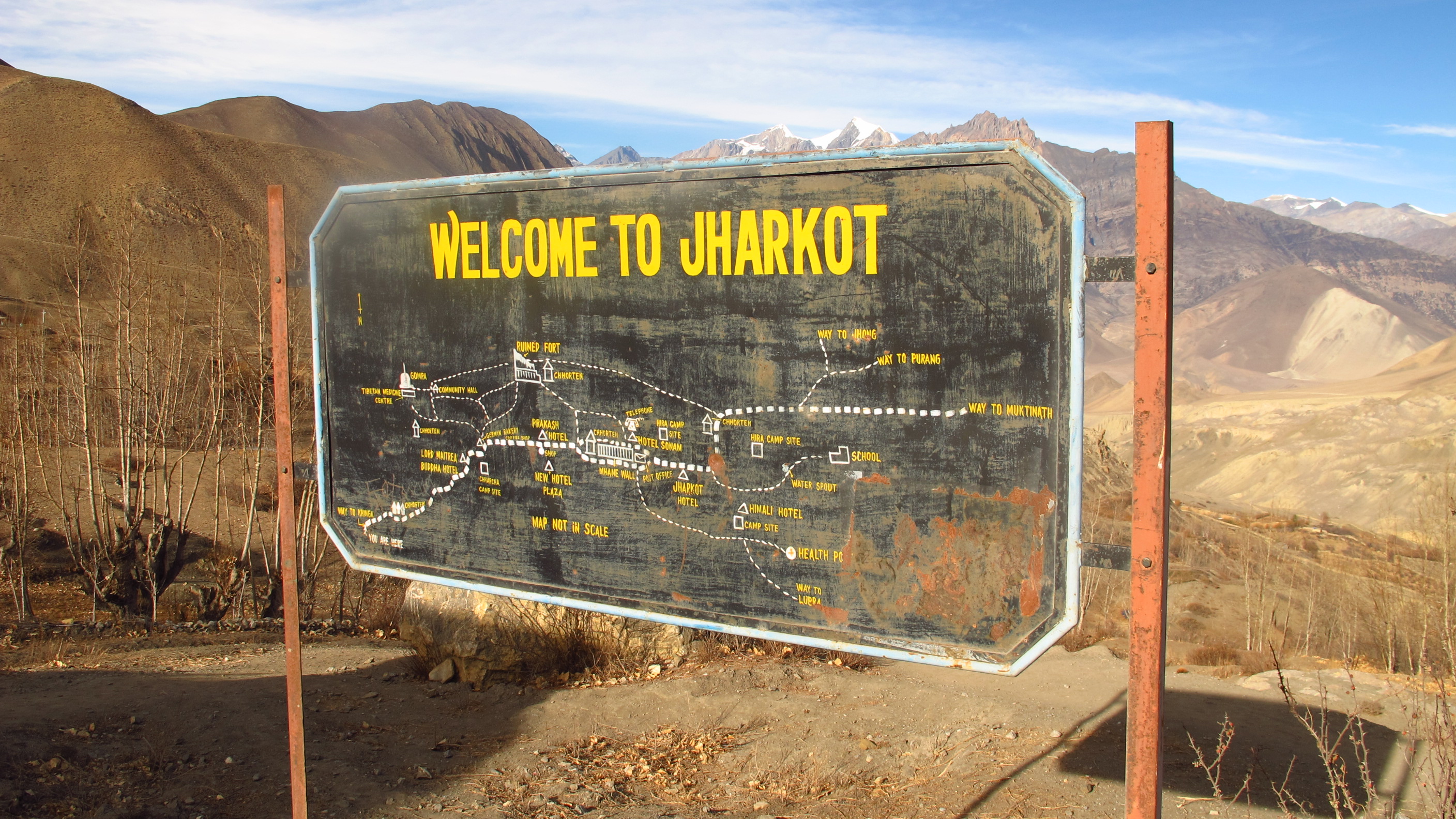 From Kagbeni it was a very flat and windy walk through and along the riverbed to Jomsom. At times the path was not clear and I had to just walk towards the towns outline in the distance. The river, this time of year, is nothing more than a dribble of water through the sand and it was very easy to walk through. It did seem to go on forever though! Eventually I did come to the town and went in search of the infamous ATM!!!