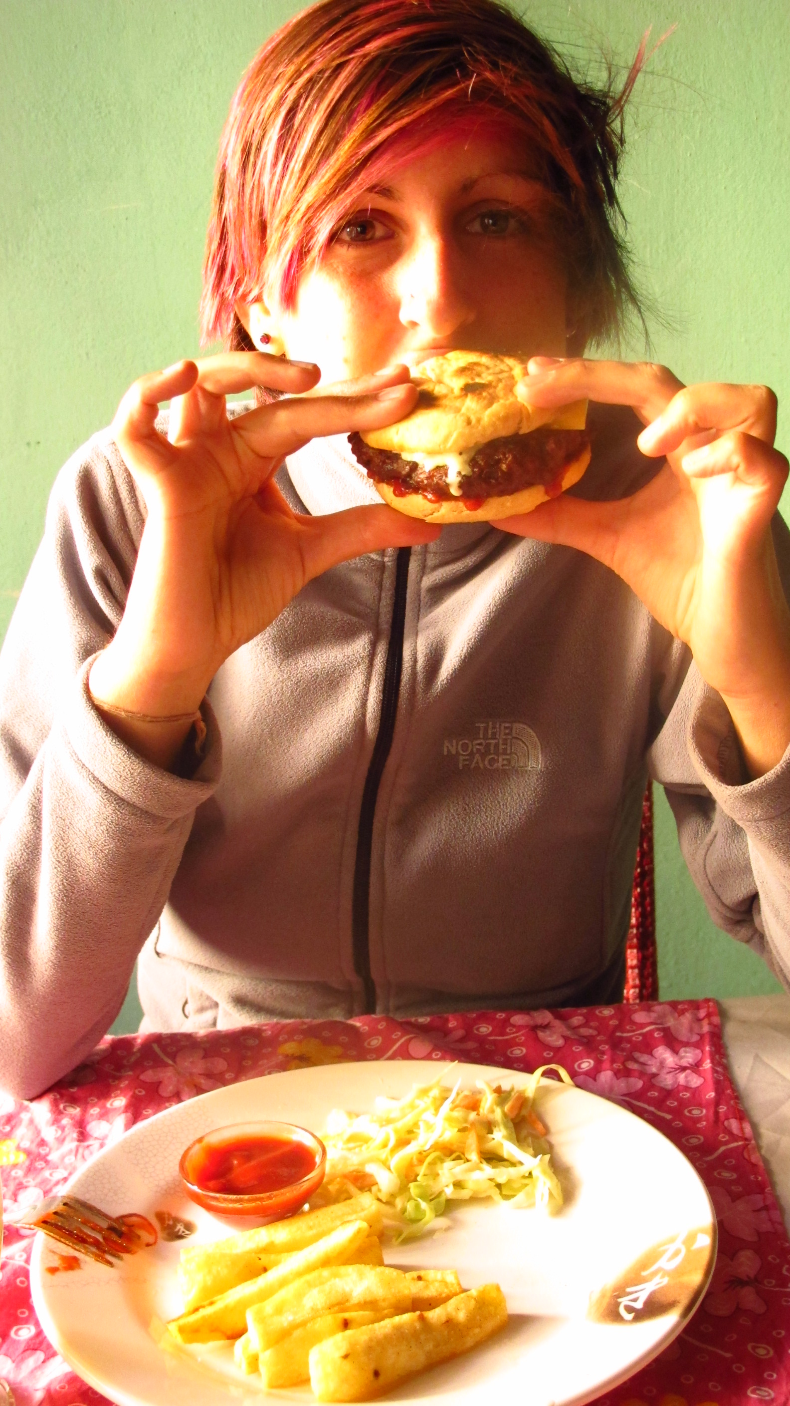 OMG! It’s so cold up here in the mountains! Eating dinner I was wearing all of my clothing, coats and gloves as well.
