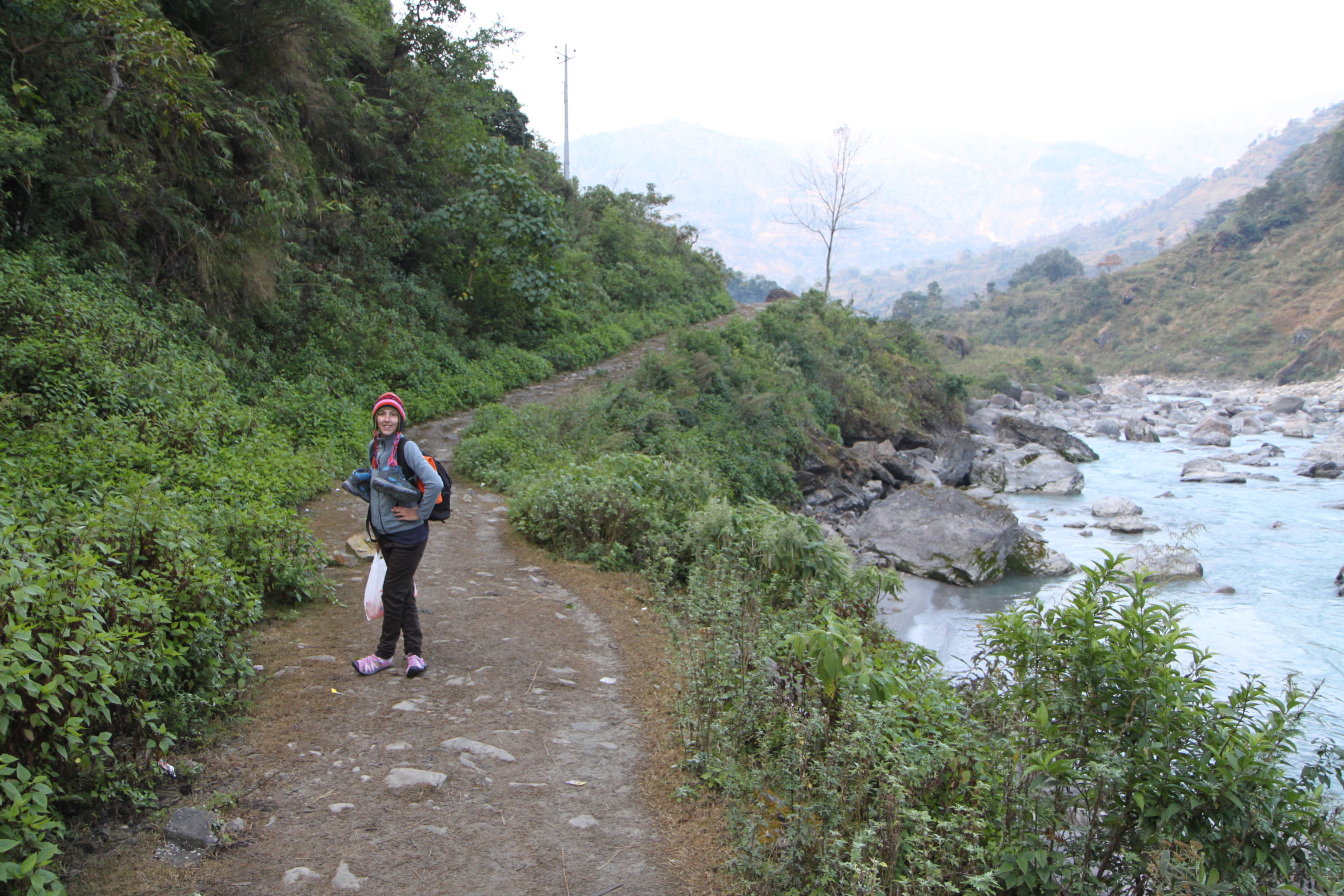 Arriving to Bhulebule at around 5pm ish, I checked into a little lodge and then headed straight to the ‘Tourist Checkpoint’ to get my permits and TIMS cards checked. Following this I ate in a hotel across the river and then went back to the room, hoping to chill out a little after a full day of travelling. Unfortunately the owner of the lodge came and knocked on the door, asking that I come down to eat in the dining room with everyone. I tried to explain that I had already eaten, but this just seemed to make him angry!
