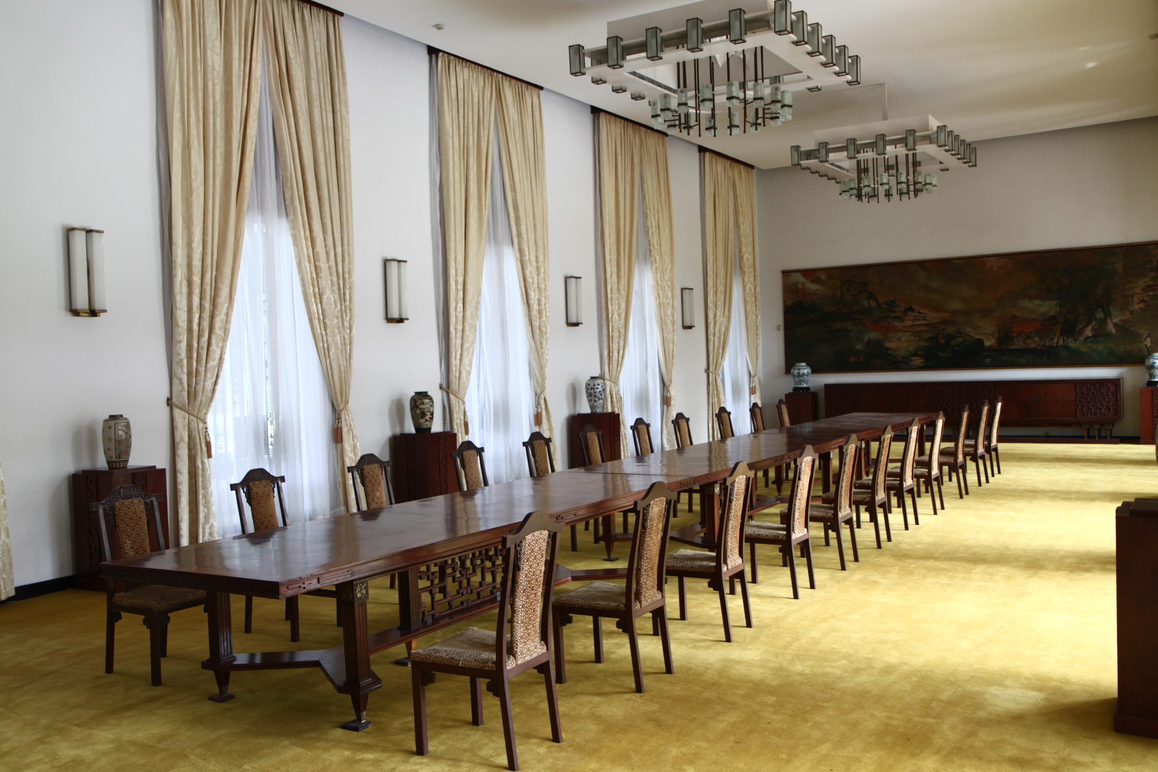 The Reunification Palace is in the center of Ho Chi Minh City and is built on the site of the former Norodom Palace. It is a big landmark in the city, as it was the site of the end of the Vietnam War during the fall of Saigon on April 30th 1975. On this date the North Vietnamese Army tanks crashed through the gates and found the president of the South Vietnamese army ready to surrender. The Palace itself is still used for official purposes but the main rooms have been left completely alone and only the offices are still in circulation.