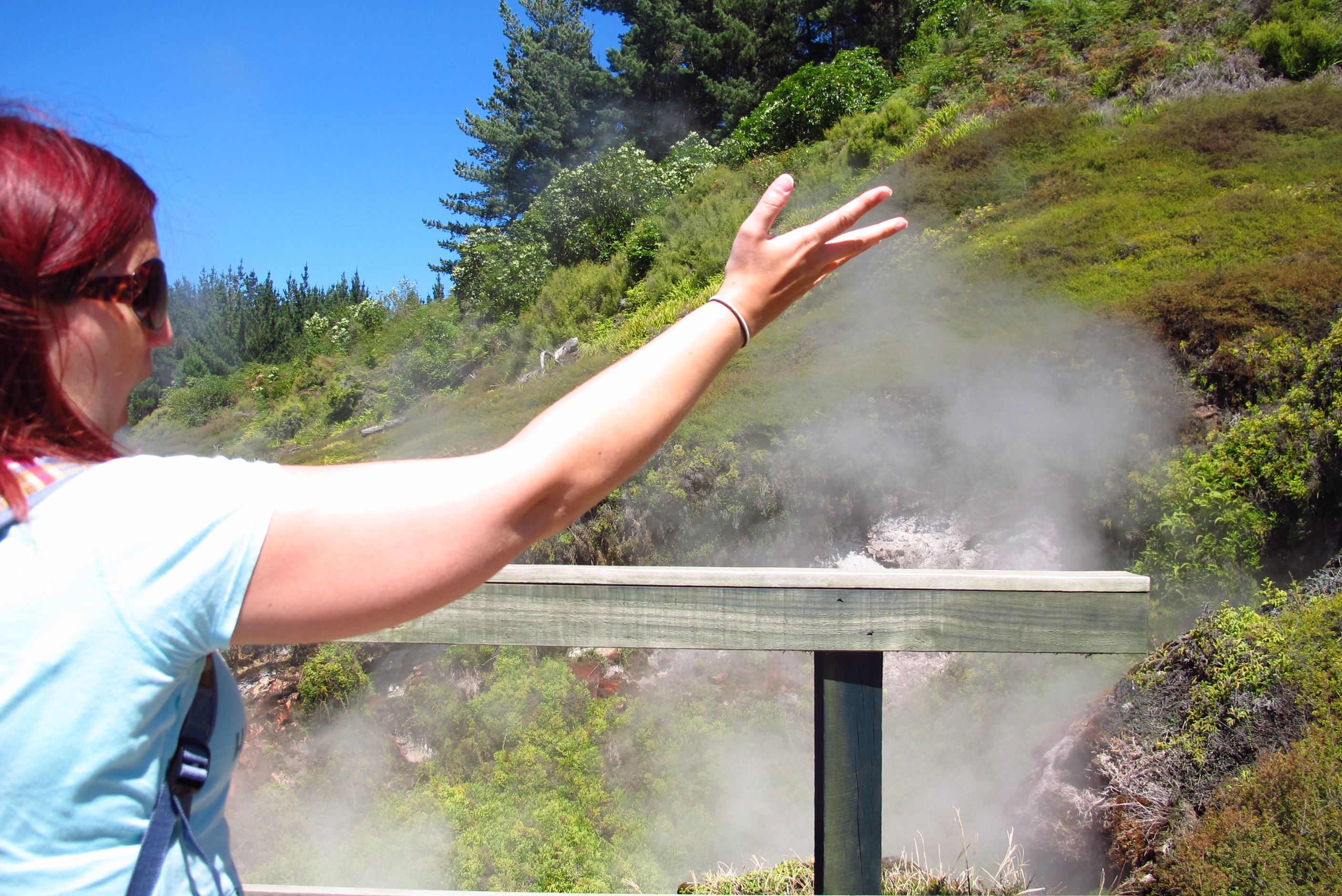 Before jumping out of an airplane for fun we did do some other stuff this afternoon: Craters of the Moon, the Aratiatia Dam and Huka Falls. Today it was hot today. Really hot. Both of us were sweating like mad after walking around in the sun for so long.