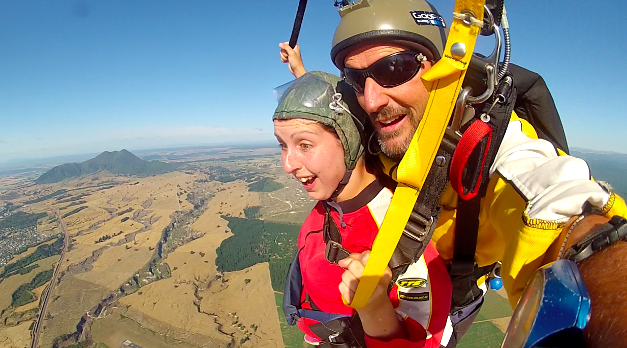 As I jumped out of the plane I do look a little deranged as the air caught my mouth giving me a sort of ‘Wallace and Gromit’ look!