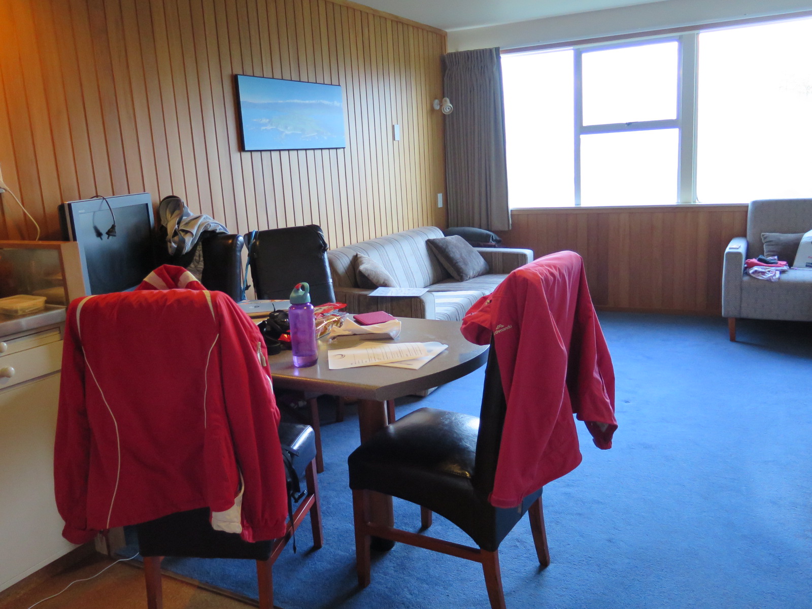 Once we arrived at ‘Discovery Lodge’ we threw our things in the room and made a cup of tea…of course. Our room was lovely; there was a bedroom (which Charlotte and Kirsten took) with a huge double bed and also a single bed and a living room type area with a sofa bed, two large armchairs, a big dining table and a cute little kitchenette.