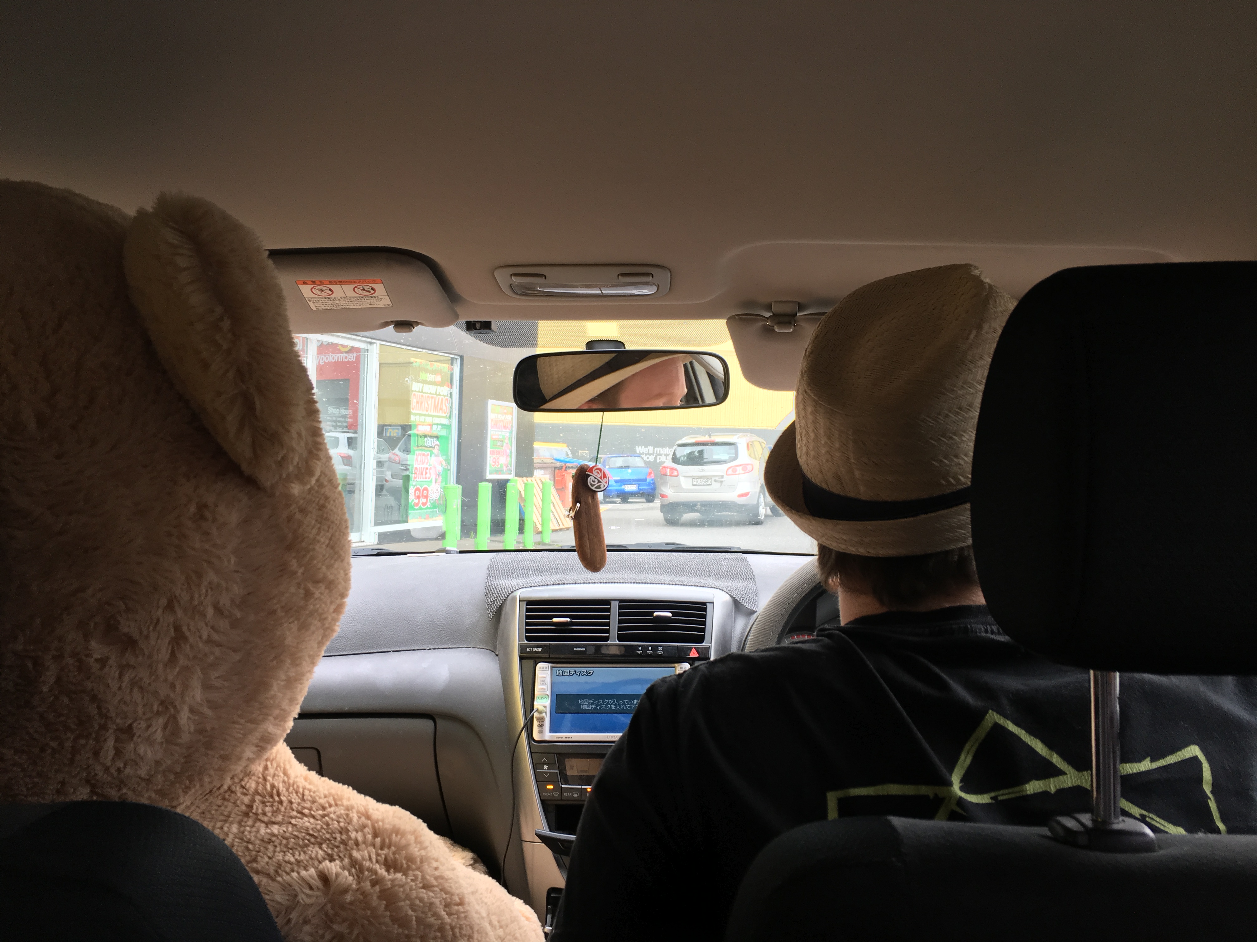 This month we’ve had lots of randomness! Michael (James’s housemate) bought the biggest teddy bear that he could find in the Warehouse, we’ve been down to the beach a few times and we’ve been out…like out out!