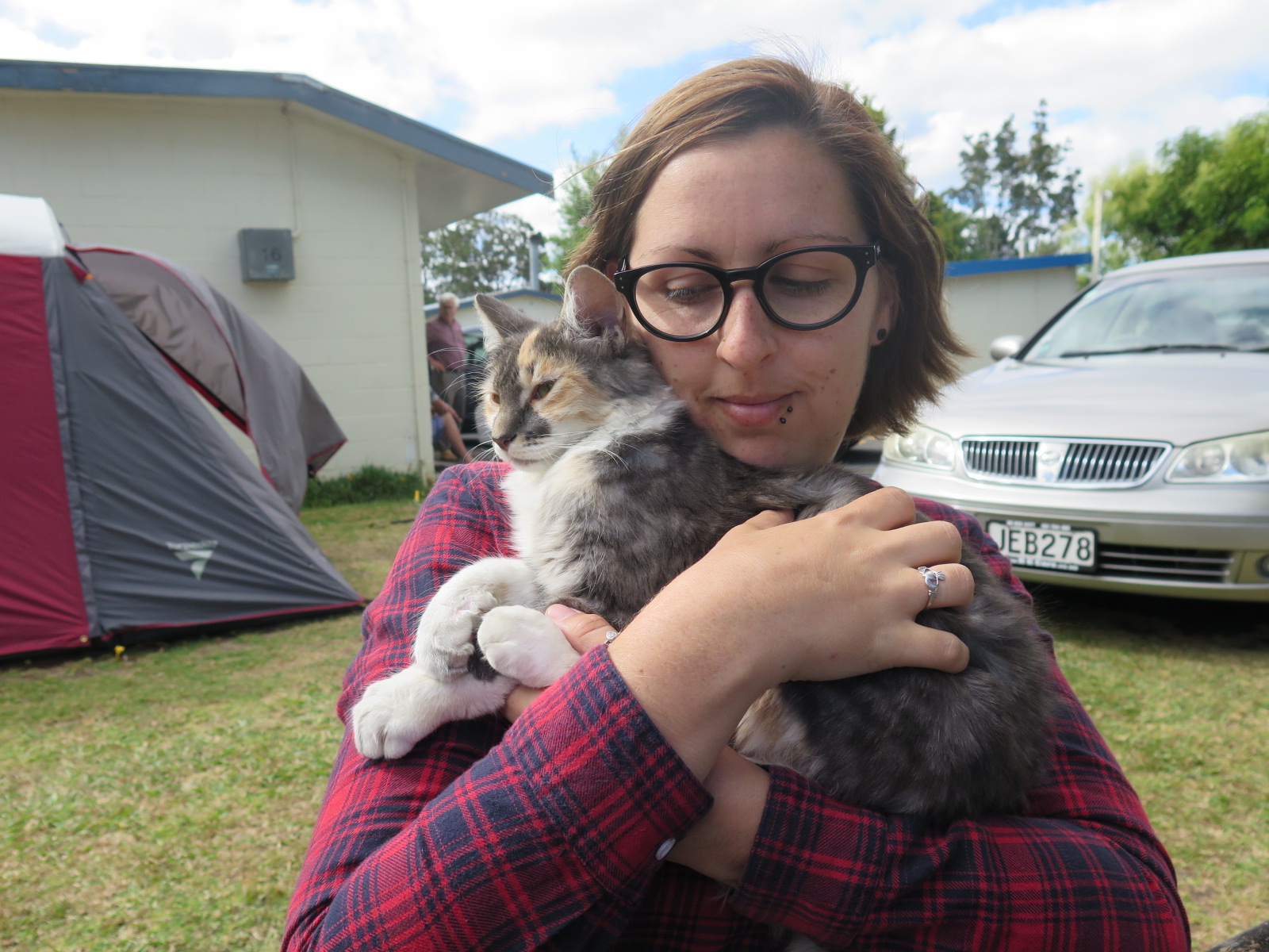 When we eventually arrived at our campsite, we were tired and hot (the weather further up the coast is a lot warmer) but were happy to have found a lovely campsite. And it really was lovely; a small place with about six powered campervan sites, four tent sites and then a dorm room and a small collection of cabins. And a swimming pool!