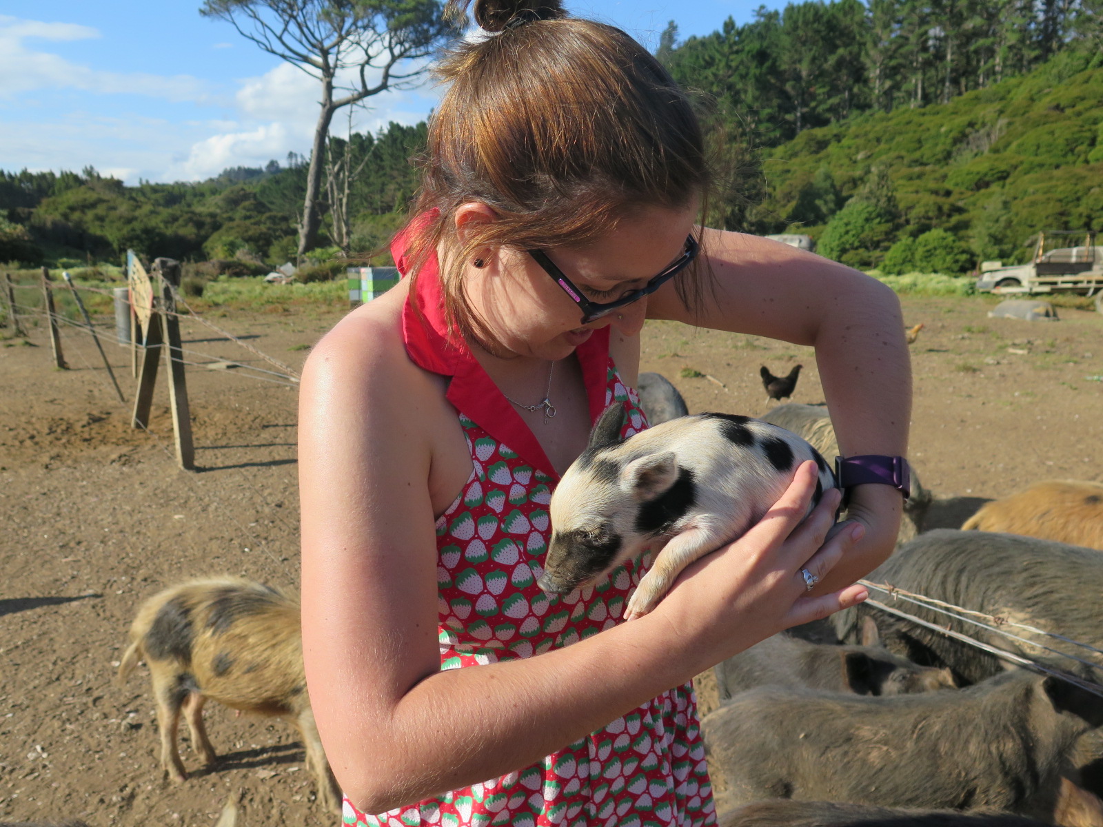 Along the drive back to the campsite we stopped to feed some random pigs…as you do. There was a tiny baby, so of course I had a hold! It was about two weeks old!