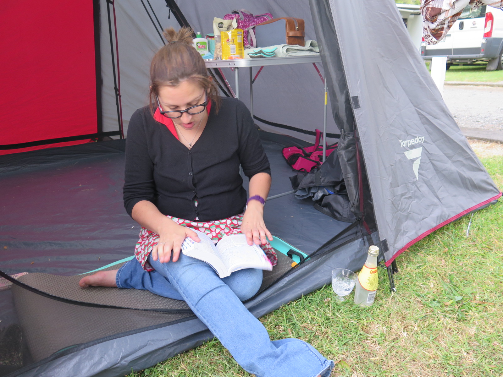 We took the Rimutaka Road, hoping to miss the holiday traffic up the highway. It took a very long time, but I think it’s worth it just for the views alone! We got to Taupo in reasonably good time and found a ‘freedom camping’ spot (its basically just a field that you can camp in, and you might get a toilet or a shower if you’re lucky) at Reid’s Farm. Nipping out for fish and chips briefly, we spent most of the evening playing cards in our shiny new tent. It was lovely 😊