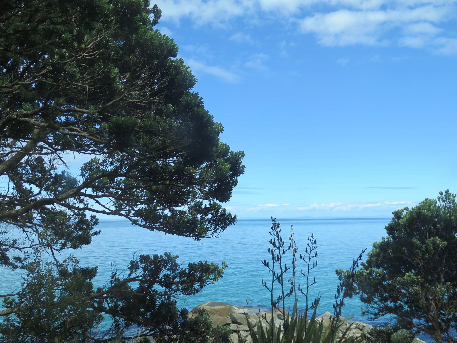 We left quite early and hoped to get to Auckland for a spot of breakfast. We passed by lots of beautiful trees and what felt like a million gorgeous beachy coves and inlets…and what must be the best placed loo in the North Island!