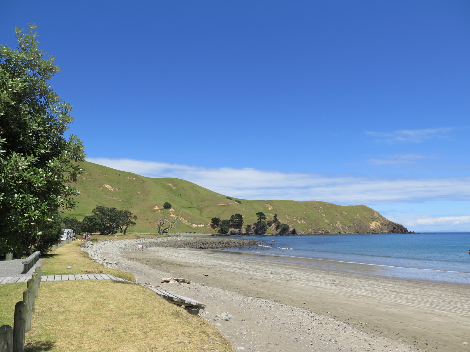 Driving through Tauranga and Papamoa Beach, we came across no campsites, so we carried on. Papamoa Beach was heaving with people! It looked a it busy for us anyway, so it’s probably a good idea that we didn’t stay there, as I think we’d have been in for lots of noise and a busy, busy beach. We must have phoned twelve or thirteen different camp sites before finally getting through to one that had space for us; Athenree Hot Springs and Holiday Park.