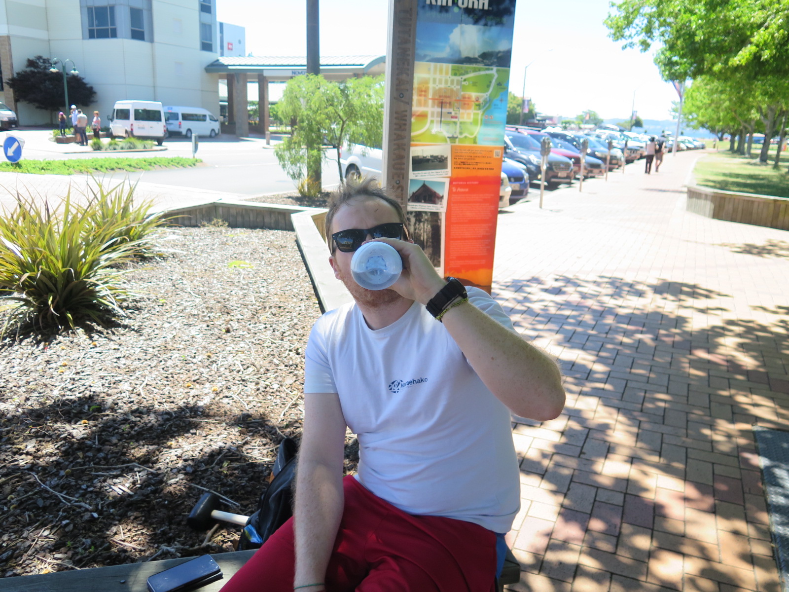 As we arrived into Rotorua we realised we were very hungry, so James created a steak lunch and we sat and ate it by the lake. It was very pleasant.