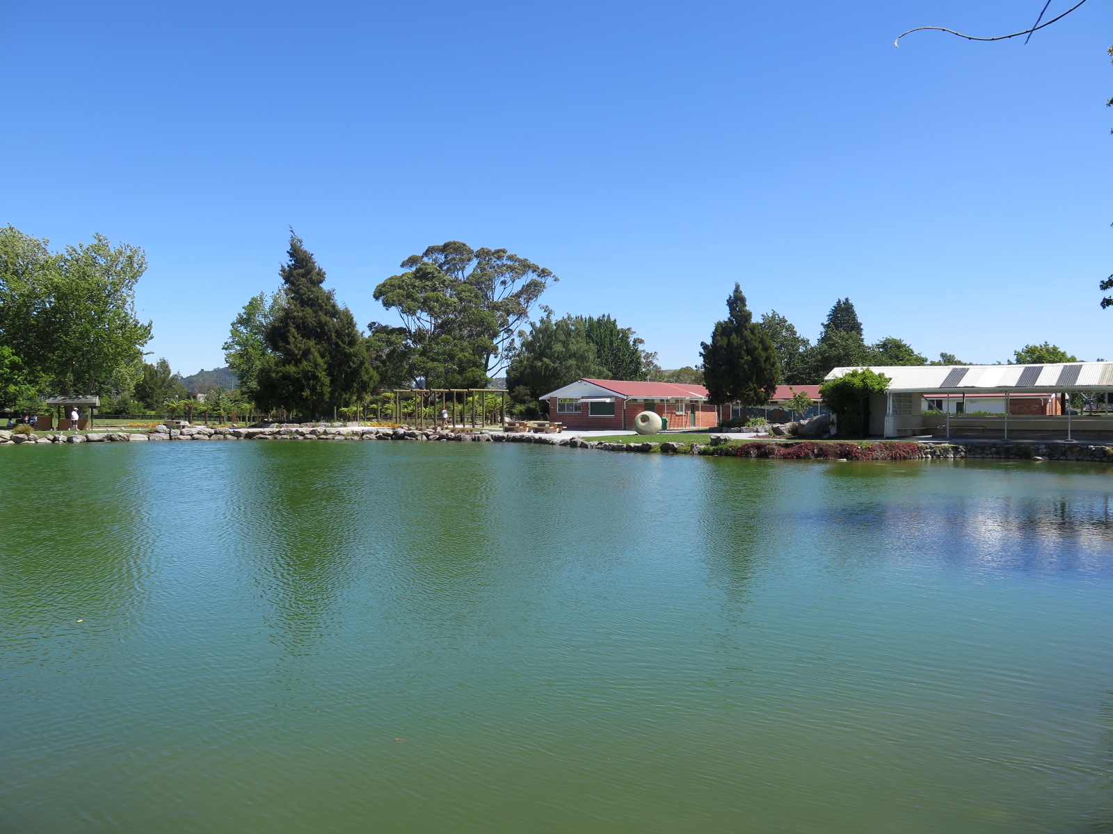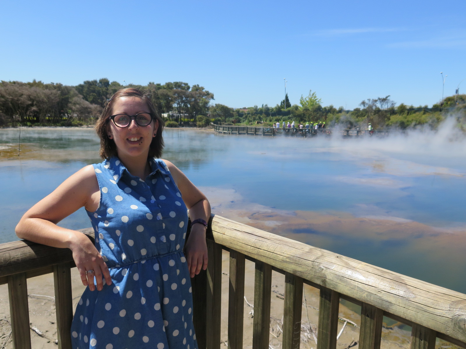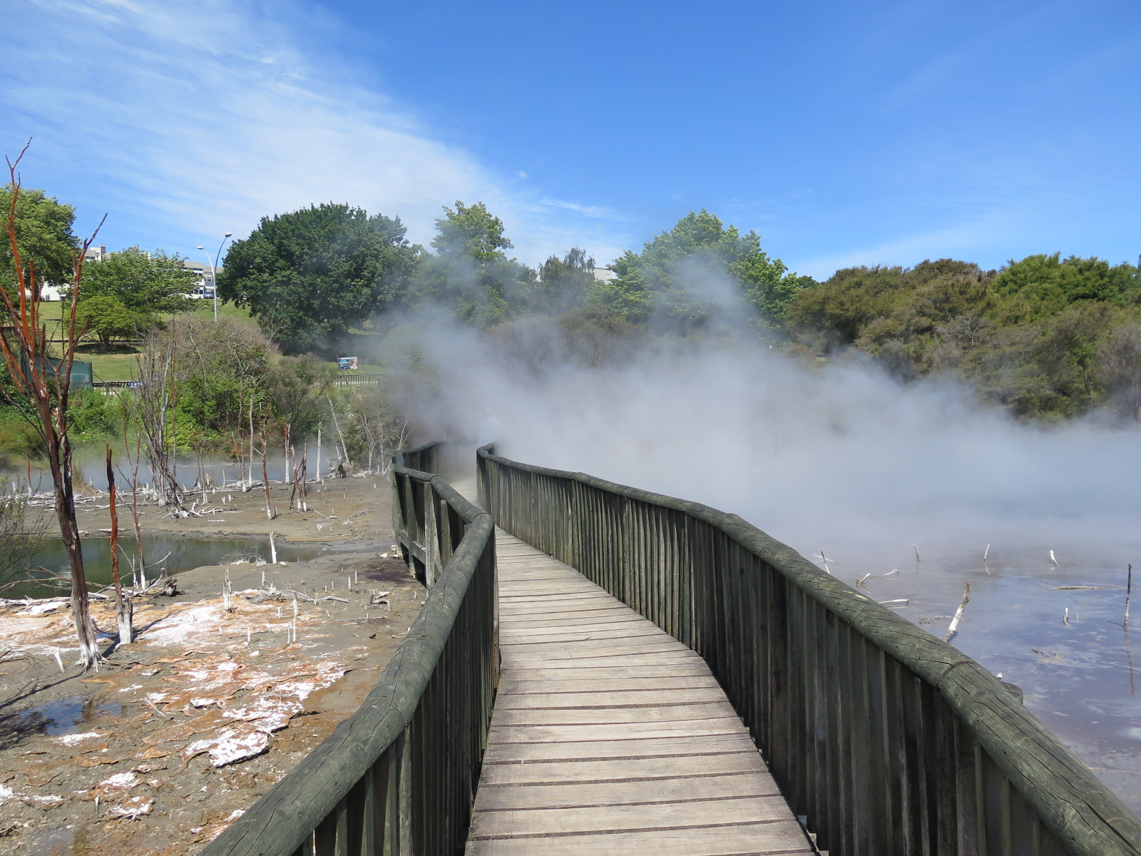 Not having a shower at the campsite, James and I got up and tried out the impressive Taupo ‘superloo’ in the city centre. It has showers and loos and proved most useful for us. We went out for a quick breakfast before driving out to Rotorua. We were going to stop at ‘Frying Pan Lake’, an area of geothermal activity, however when we found out how much it costs (over $30 each), we thought we’d give it a miss.