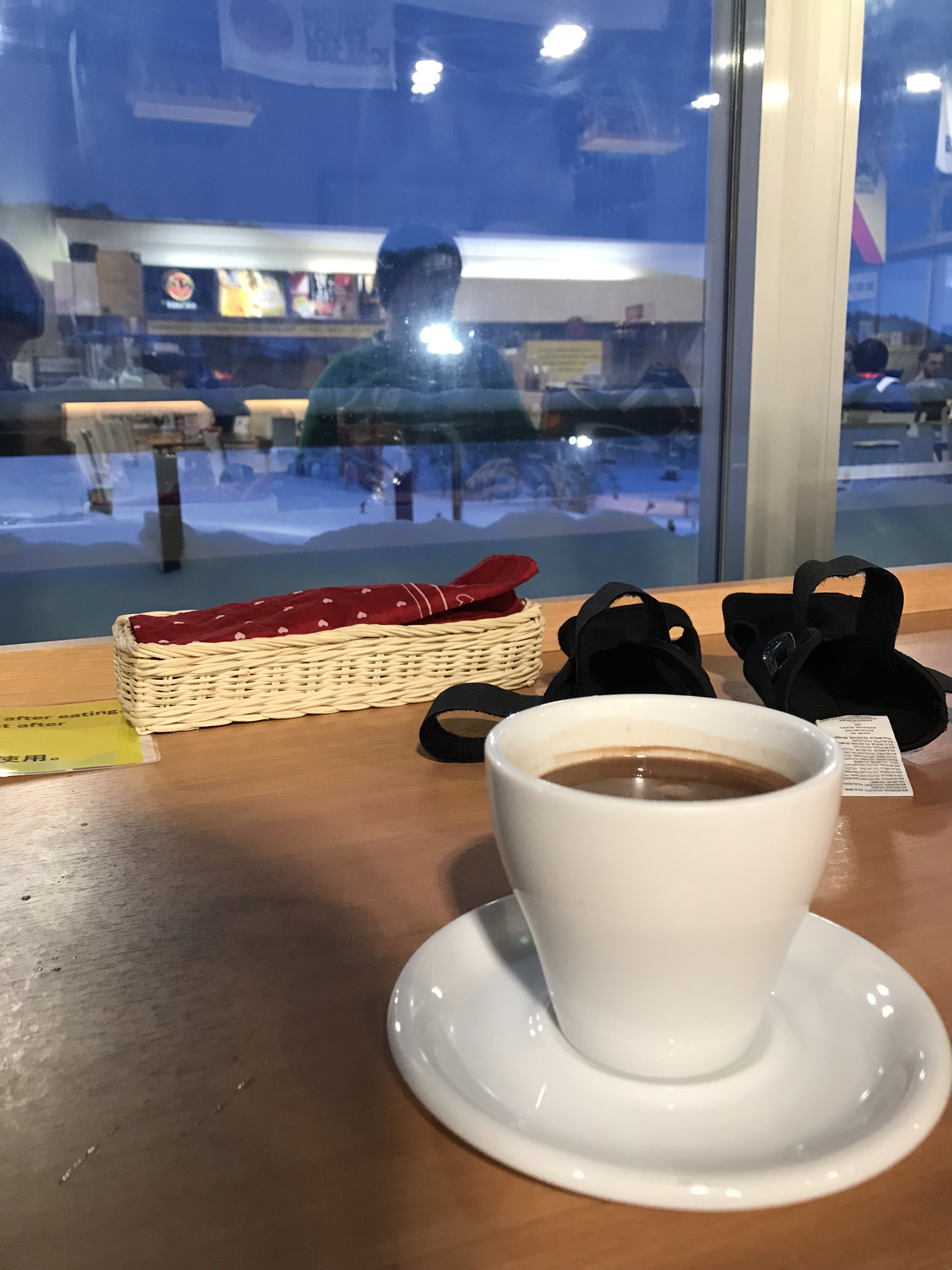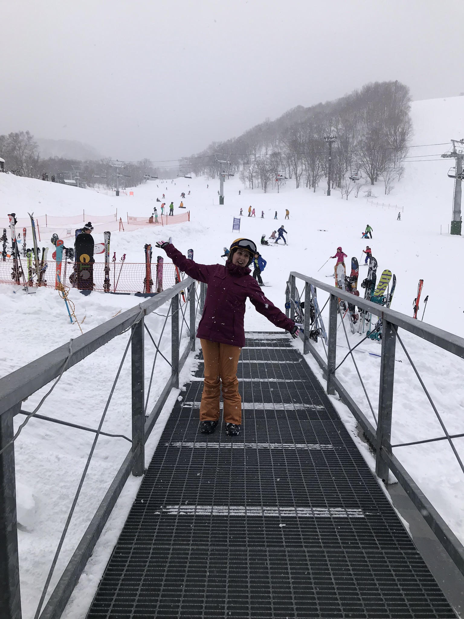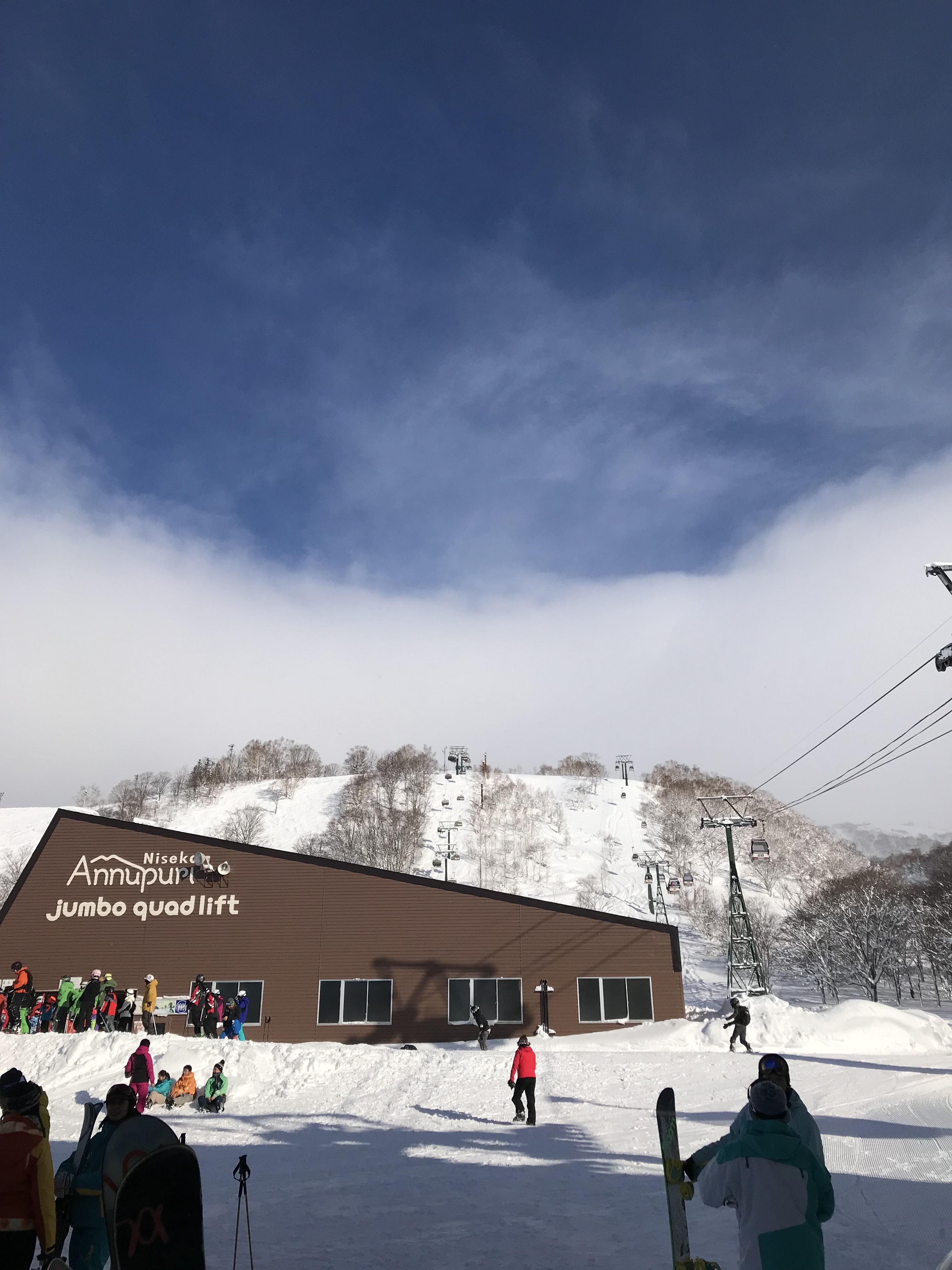 We had reached the top of the Niseko Village resort, but had to walk for about 20 meters across to meet up with the top of the Annupuri resort. The area is ungroomed and quite deep. It was getting quite late as the ski patrol people were shutting up the top lifts and we began to walk over. This took AGES and we ended up with a ski patrol escort! He was very friendly and made sure I was okay in the deep snow (which was REALLY hard to walk in). Eventually we made it across to the friendly sight of Annupuri and back down to the best hot chocolate in the Northern Hemisphere. It was well deserved. Seriously though, the hot chocolate! It was milky and chocolaty, with this weird sort of buttercream whipped cream on top…and Baileys. Yes. Baileys. YUMMY.