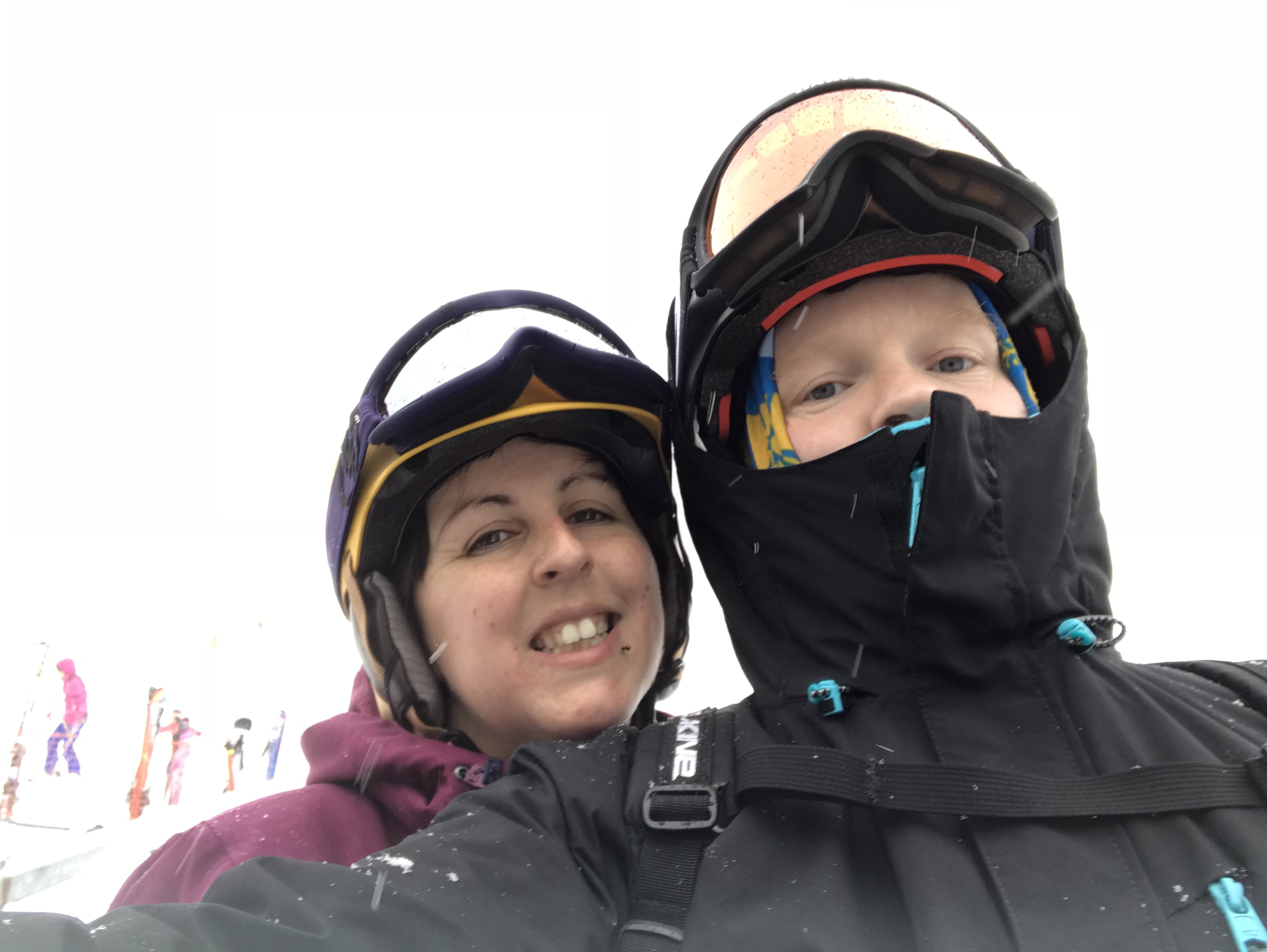 After a few days of terrible weather and being shut up inside, we were finally able to get out onto the snow! It was wonderful. We both had such a great time. There were falls and tumbles (mostly me), but mostly lots of laughing. I found it really interesting to snowboard in fluffy snow; I kept going into the powder and getting stuck! At one point I was in powder up to the middle of my shins and I couldn’t get to my board to get it off to enable me to walk out of the snow. It was hilarious and infuriating in equal measures. By the end of our time there I could confidently swish down the mountain fast and avoid trees.