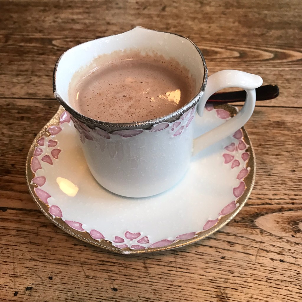 The hot chocolate was in a cute little tea cup with a saucer and it was perfect. I took many photos of it!