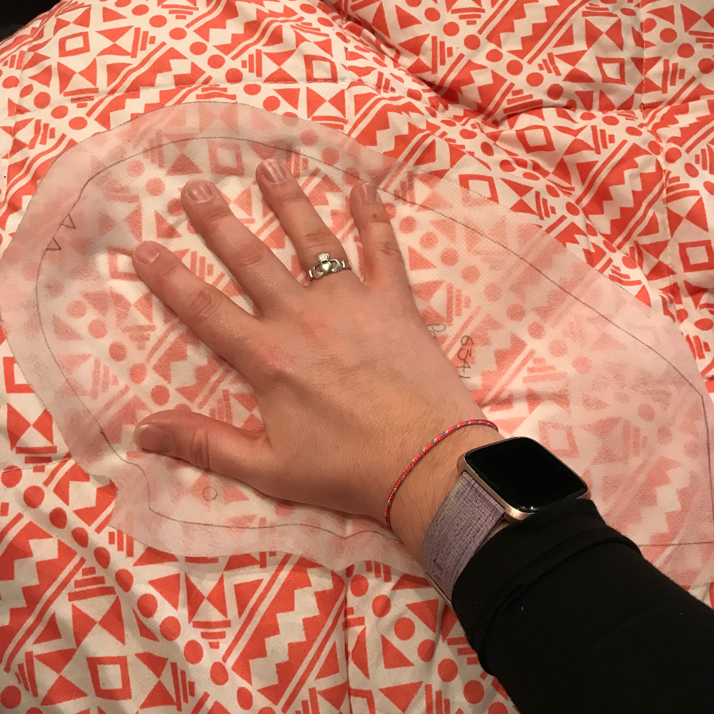 We also got a lesson in how to make the pockets bigger, as the pattern has relatively small pockets. I literally placed my hand on the existing pocket pattern piece and extended it to go out to where my fingers reached.