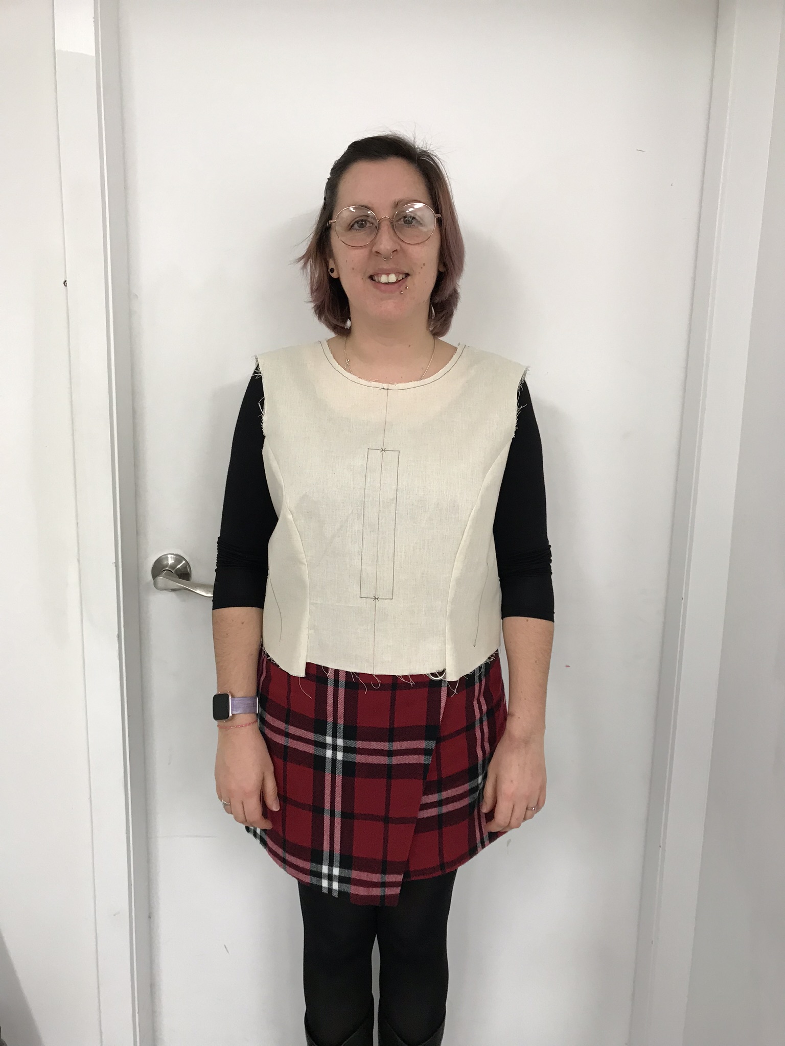 Everyone came to class ready to show off our first attempt at a toile. I was quite happy with mine, however it was quite saggy…I learnt during the class that I had sewn with the wrong seam allowance. We had allowed for a 15mm seam allowance, however, I had sewn with a 6mm seam allowance