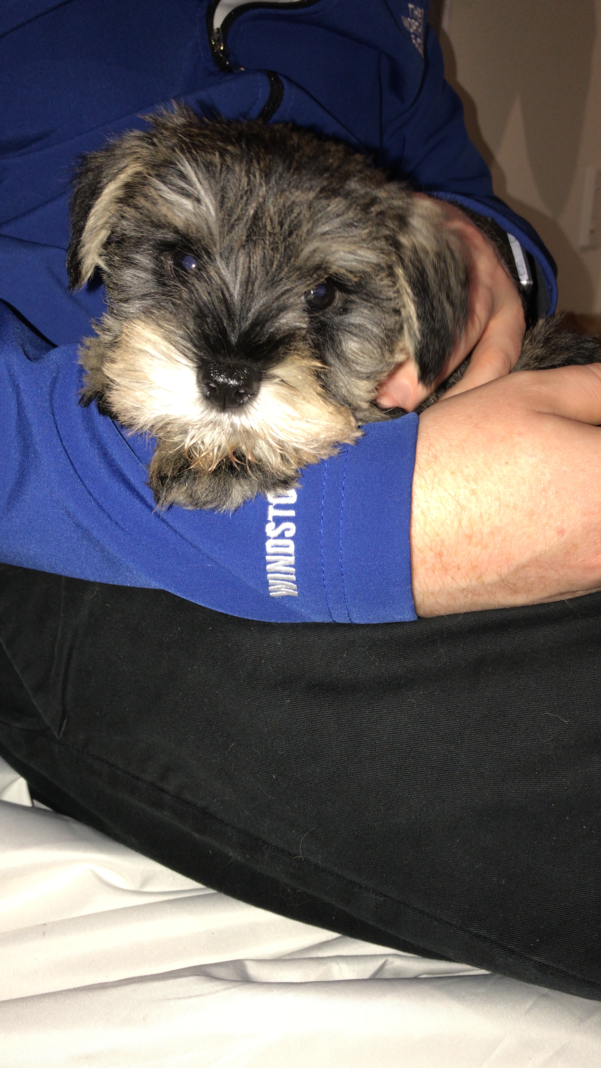 At the breeders house we sat down and filled in all of the paperwork before leaving with our little Herman. At first he was crying and sounded so upset, but after I moved him onto my lap he seemed to settle, and then he fell asleep!