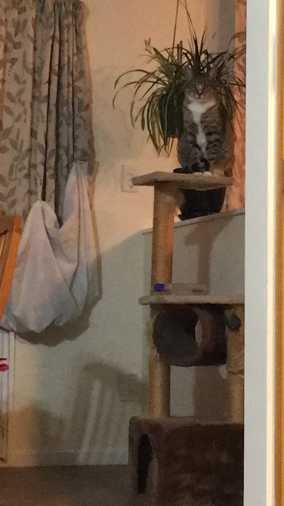 The cats seem to be reasonably interested in Herman, Agatha more so than Scribble. Agatha is doing with Herman what she was doing with the chickens, it’s like she thinks she’s their mum. Scribble is a little more wary!