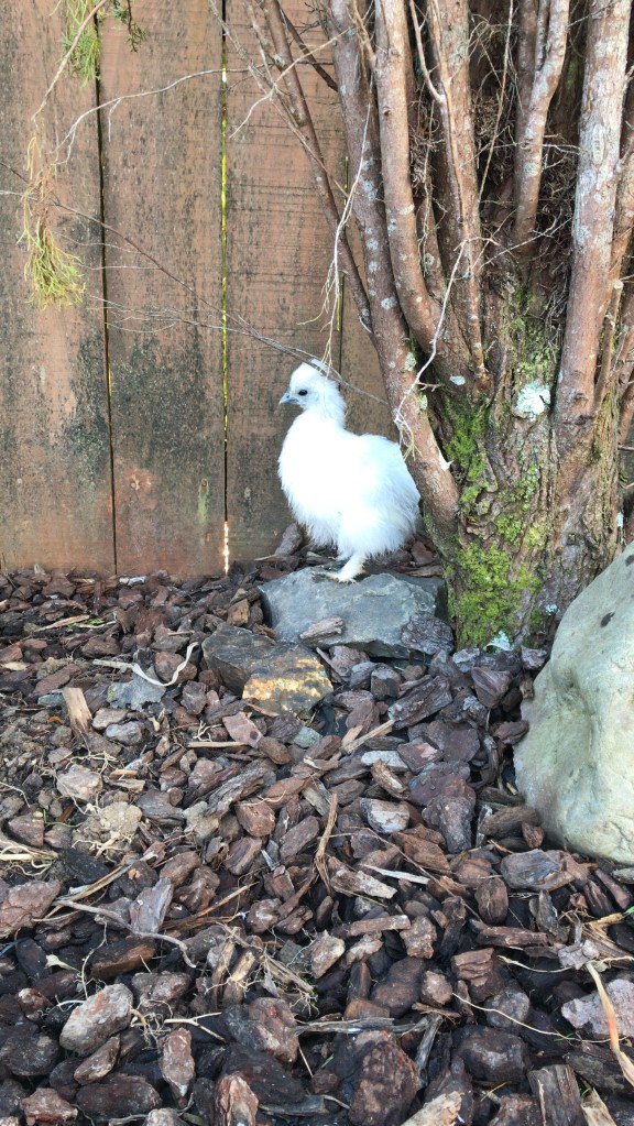 When we got to Staglands we weren’t sure what sort of colour the chickens would be, so I couldn’t come up with a name straight away. When we got there, we found that all of the silkies were white.