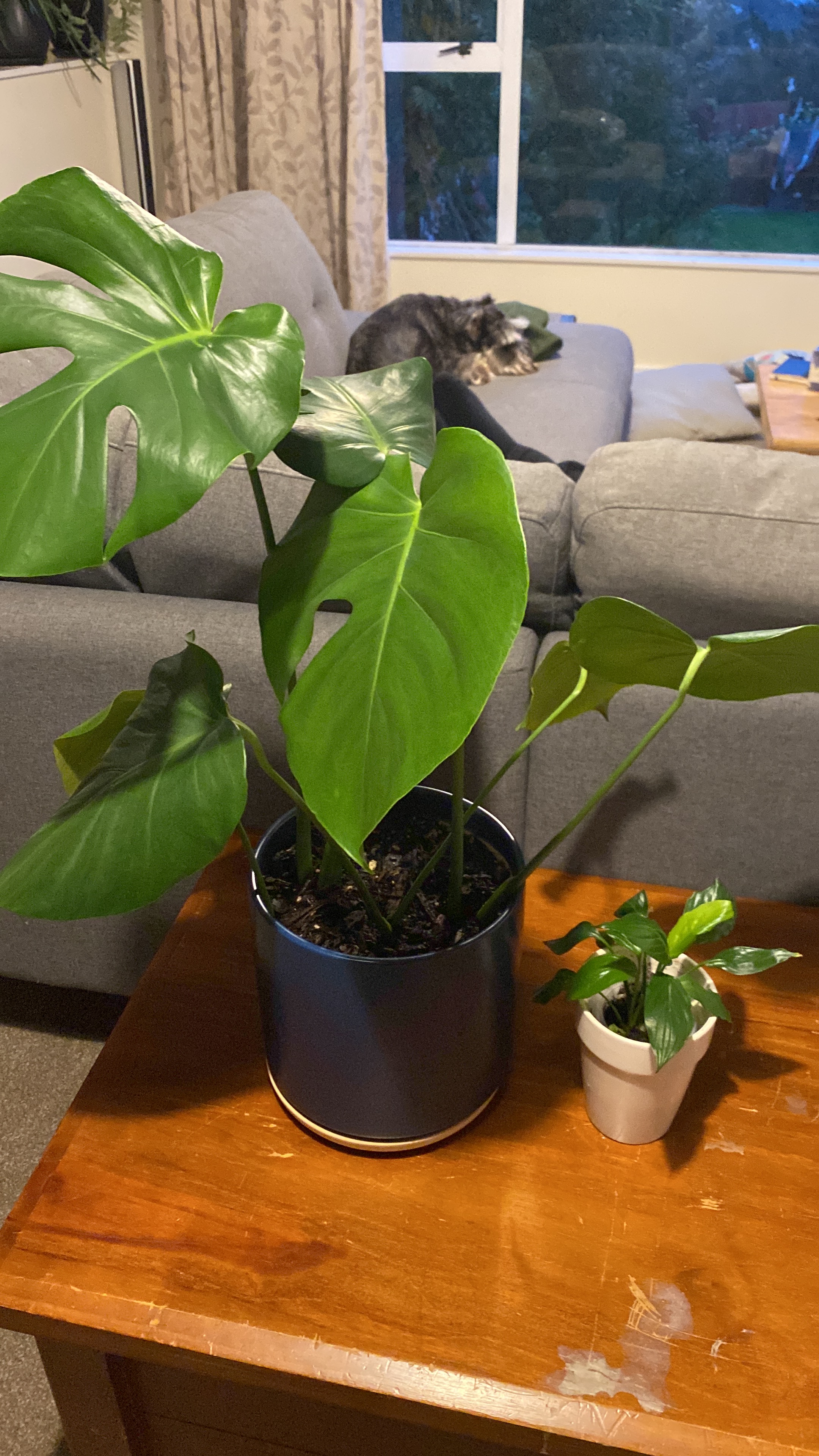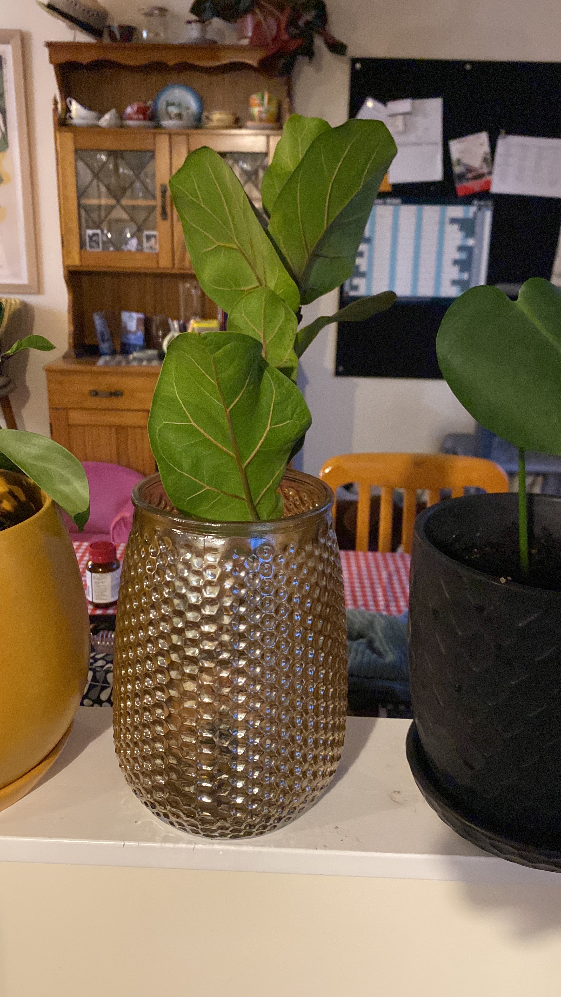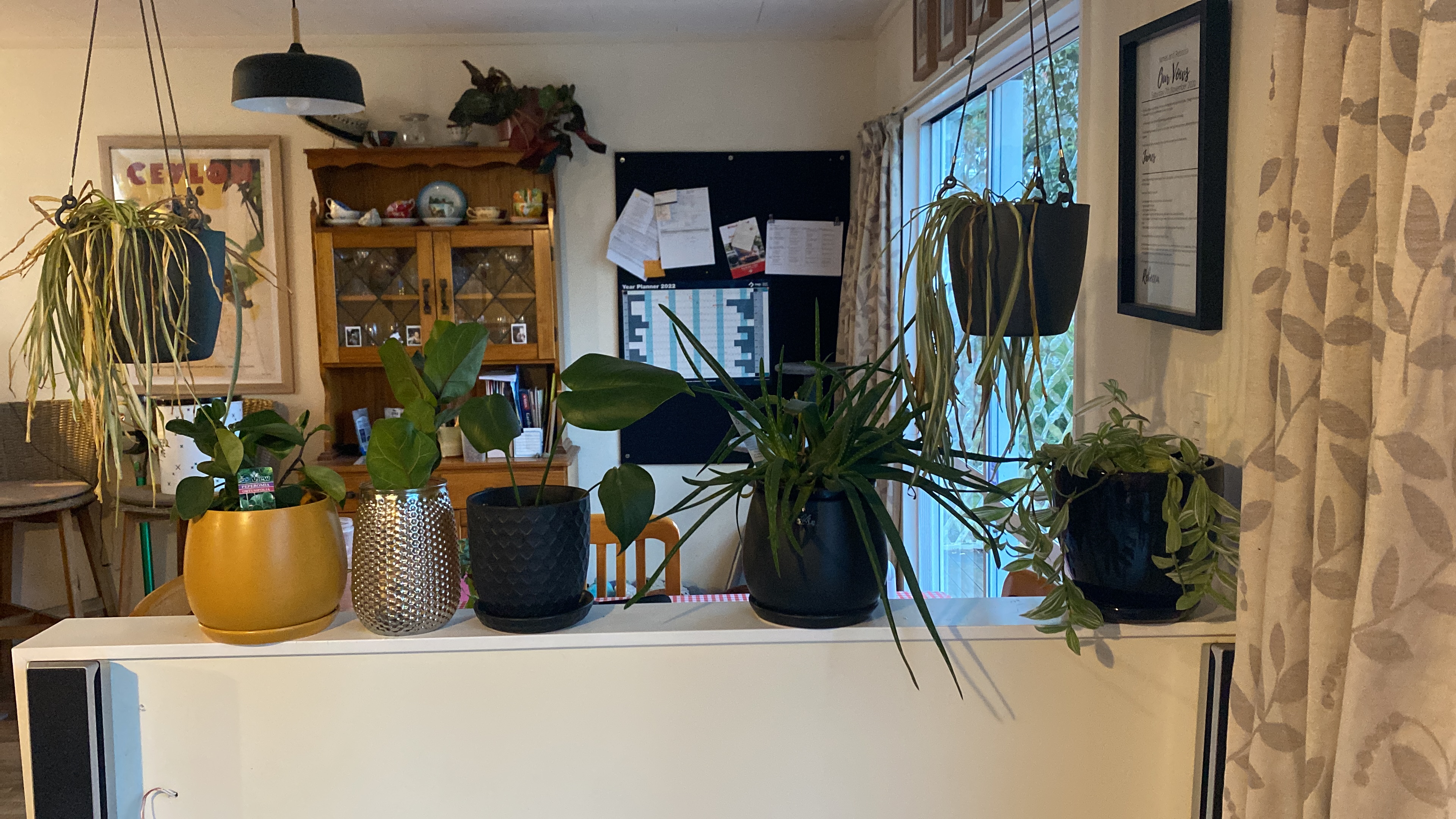 A friend from work was kind enough to give me LOADS of cuttings and plants to repot. I ended up with an Elephant Ear Begonia, a Fiddle Leaf Fig, a few Monstera plants, a Pathos (I think that is how you spell it), two different types of hanging plant and three sizes of Peace Lily.